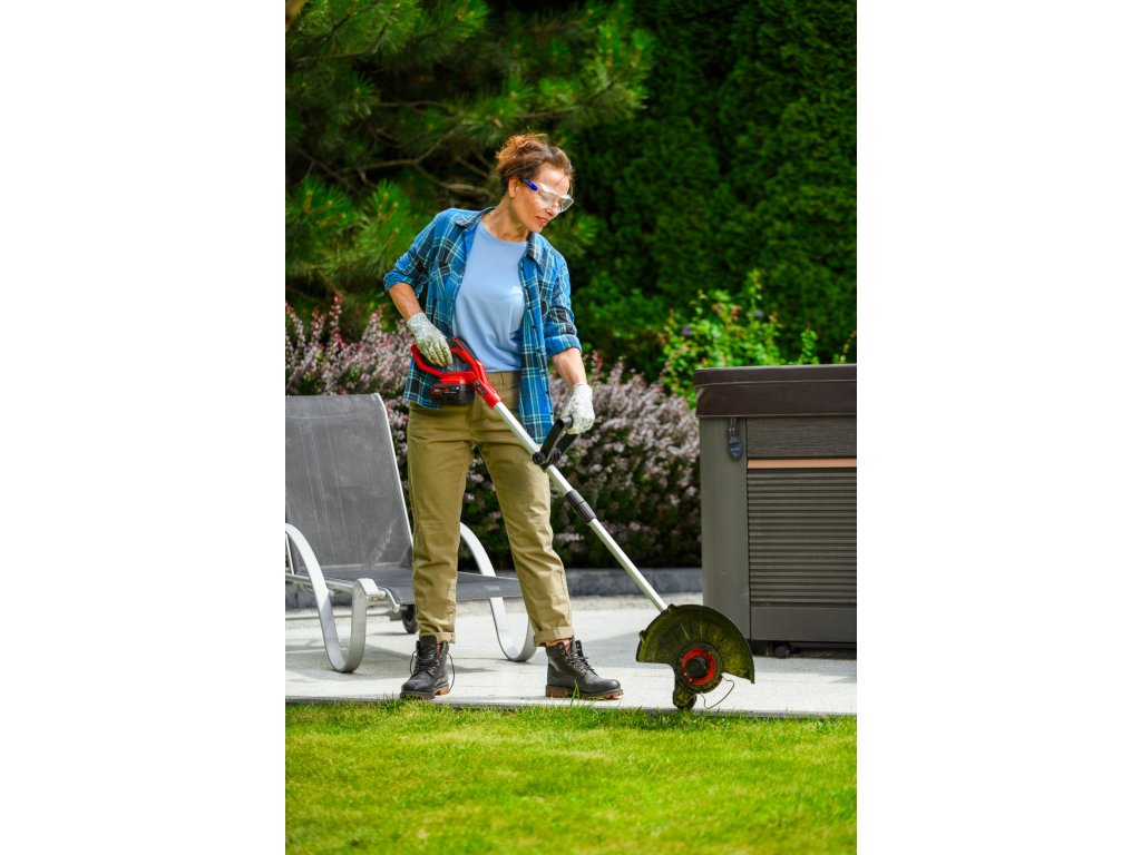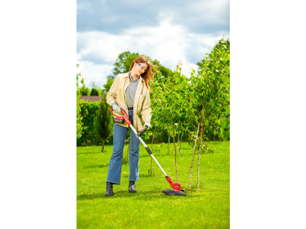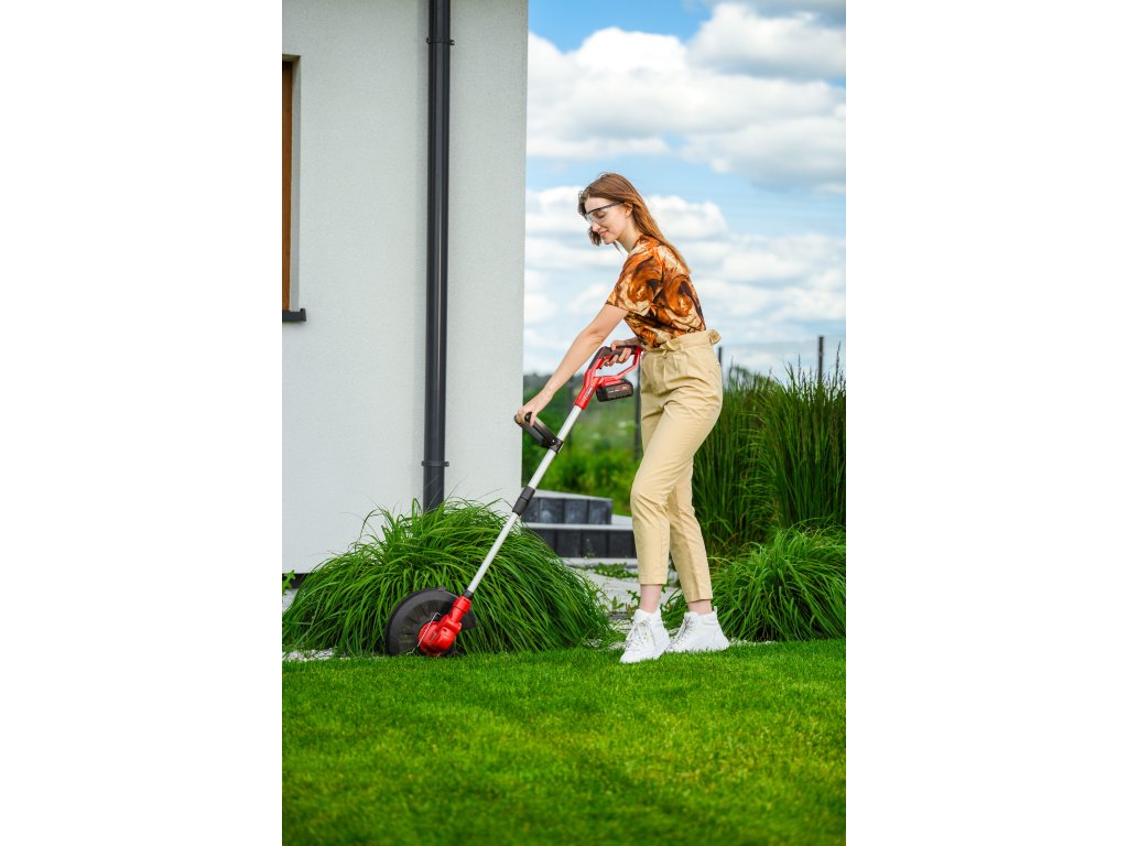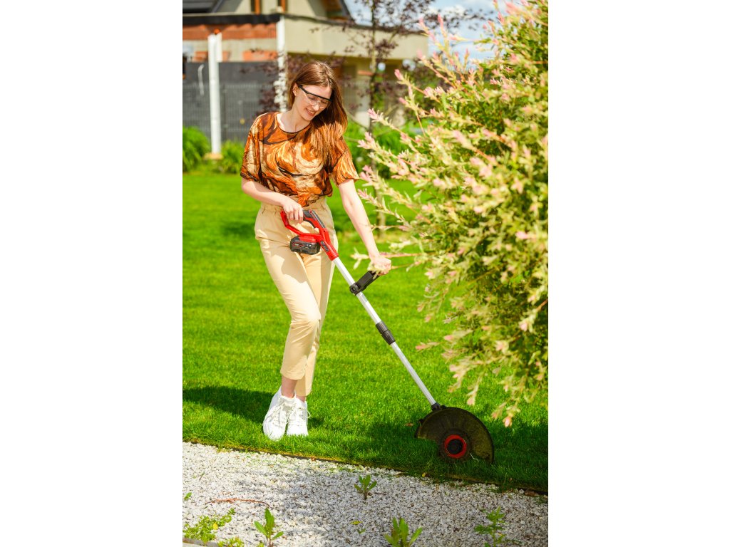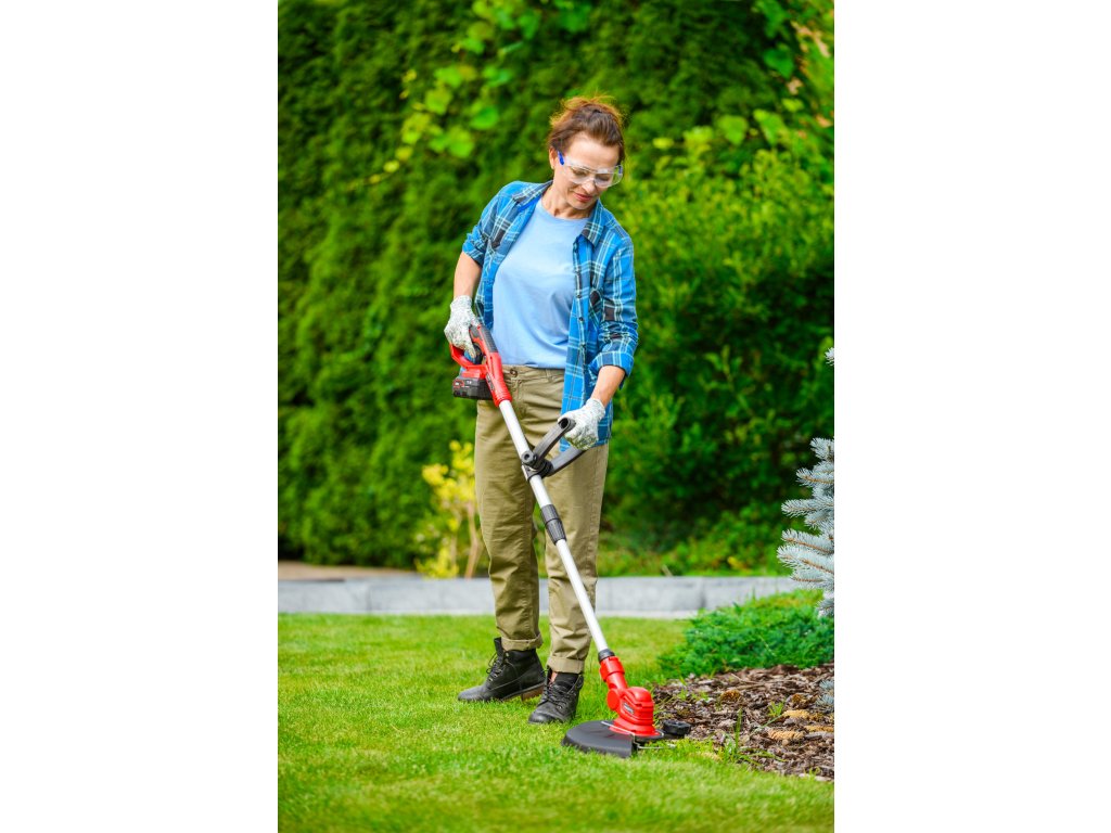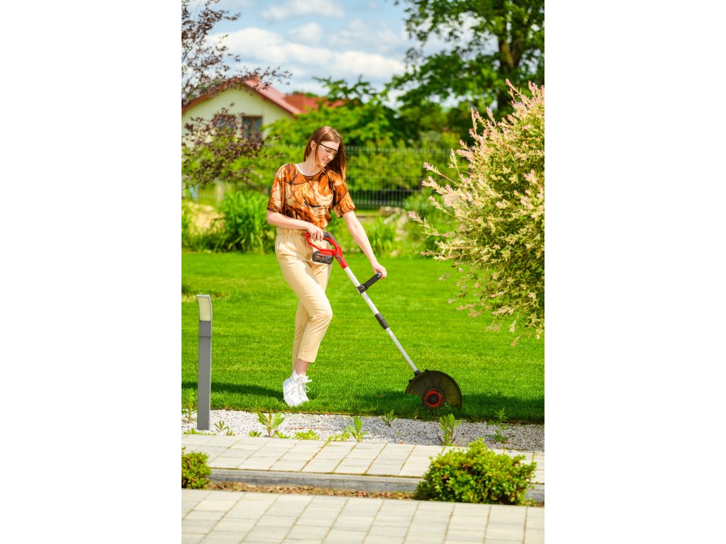 - Je vybavena automatickou strunovou hlavicí s průměrem 1,6 mm, která se sama přizpůsobuje při sečení. Regulovatelná hlava se sklonem 90° umožňuje přesné zastřihávání i na hůře dostupných místech. Délka rukojeti je nastavitelná v rozsahu 1,0 - 1,36 m, což přináší pohodlí při práci.