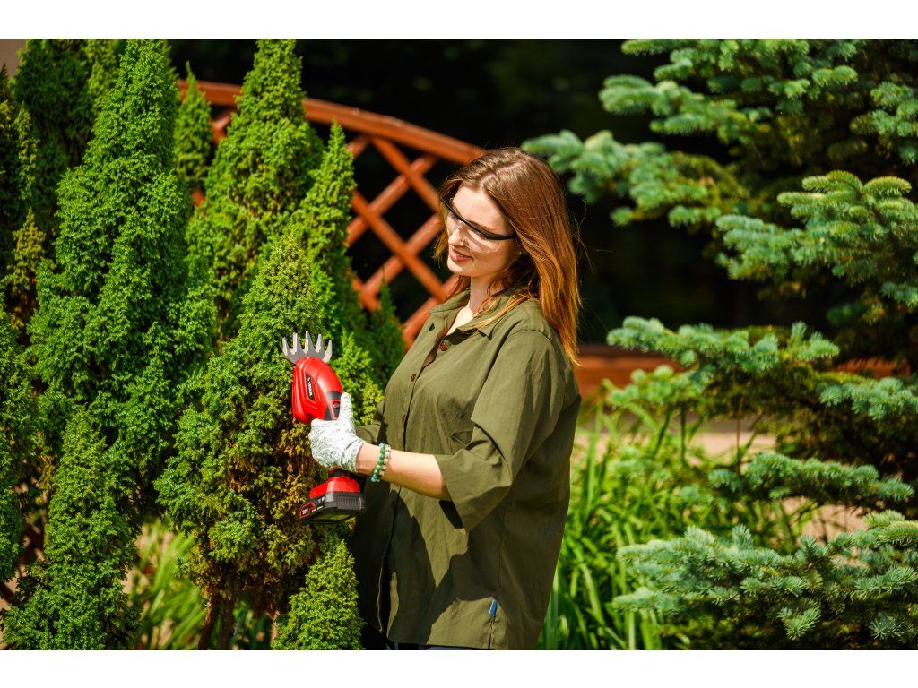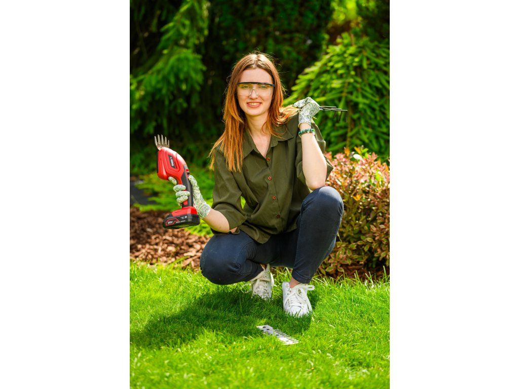 - 3v1 funkce – nůžky na trávu, nůžky na živý plot, kypřící pazourky