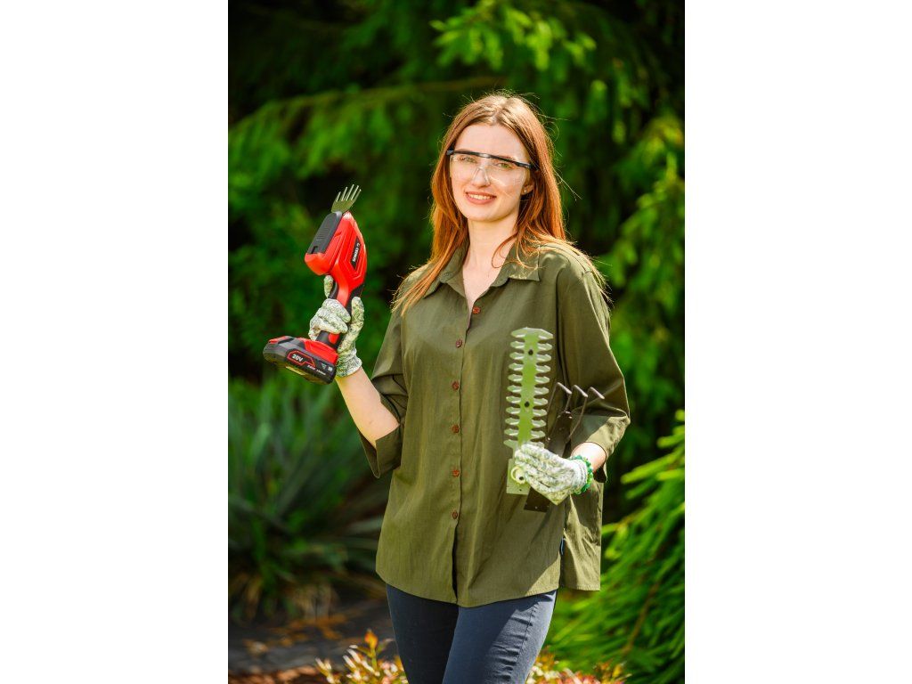Akumulátorové nůžky Cedrus CEDGS100LI jsou ideálním pomocníkem pro úpravu trávníků, živých plotů a kypření půdy. Díky 3v1 funkcionalitě umožňují rychlou změnu mezi nůžkami na trávu, plotostřihem a kypřicími pazourky. Kompaktní a lehká konstrukce spolu s ergonomickým měkkým úchopem zajišťuje pohodlnou manipulaci i při delší práci. Přístroj je napájen max 20V Li-Ion baterií a je kompatibilní s akumulátory CEDLi-Ion 2Ah, 4Ah a 6Ah. Nůžky neobsahují baterii ani nabíječku, což umožňuje využití kompatibilních akumulátorů z jiných zařízení Cedrus.