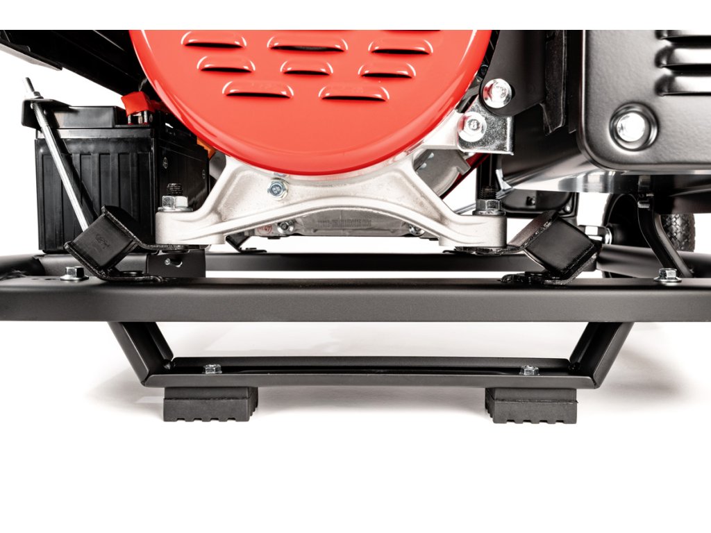 - Robustní ocelový rám chrání agregát při manipulaci i provozu. Díky transportnímu podvozku s koly a madly je přesun zařízení snadný i při hmotnosti 90 kg.