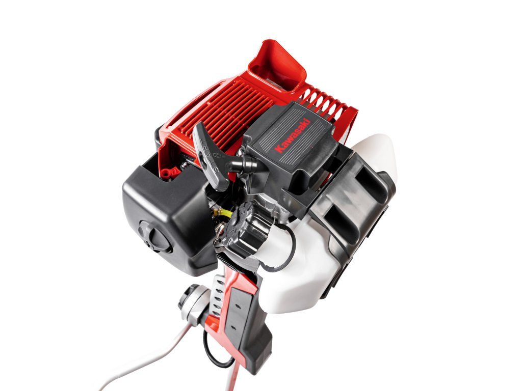 - Základem stroje je dvoutaktní motor Kawasaki TJ45E s objemem 45,4 cm³, který poskytuje stabilní výkon 1,42 kW (1,90 HP). Díky tomu si poradí nejen s běžnou trávou, ale i s hustším porostem.