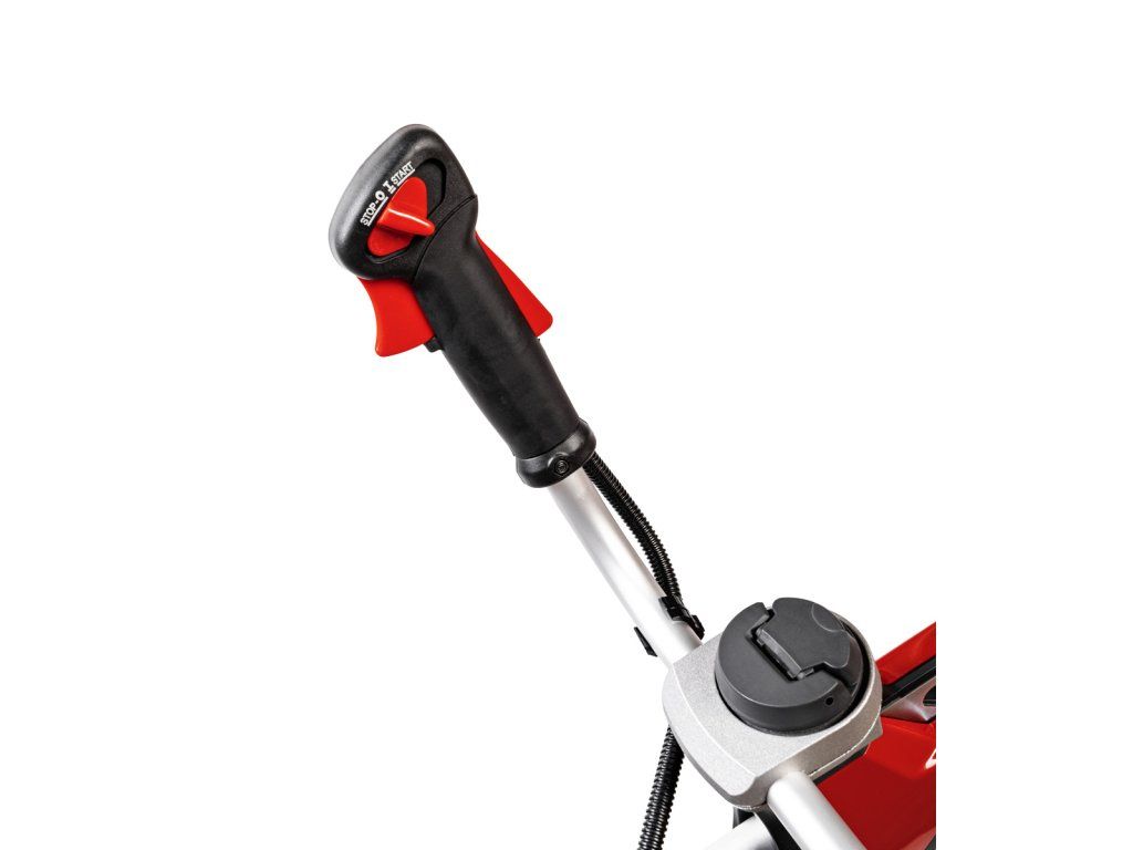 - Práci usnadňuje dvojitá rukojeť, která umožňuje lepší kontrolu nad strojem a přirozený pohyb při sečení. Antivibrační systém pomáhá snížit přenos vibrací do rukou, což oceníte zejména při delším používání.