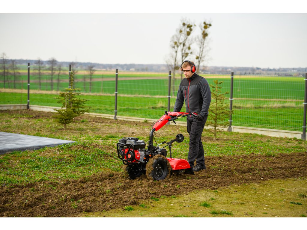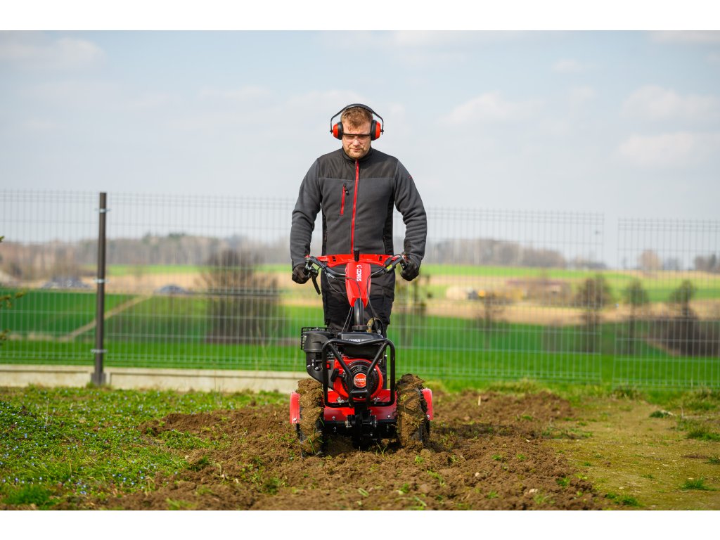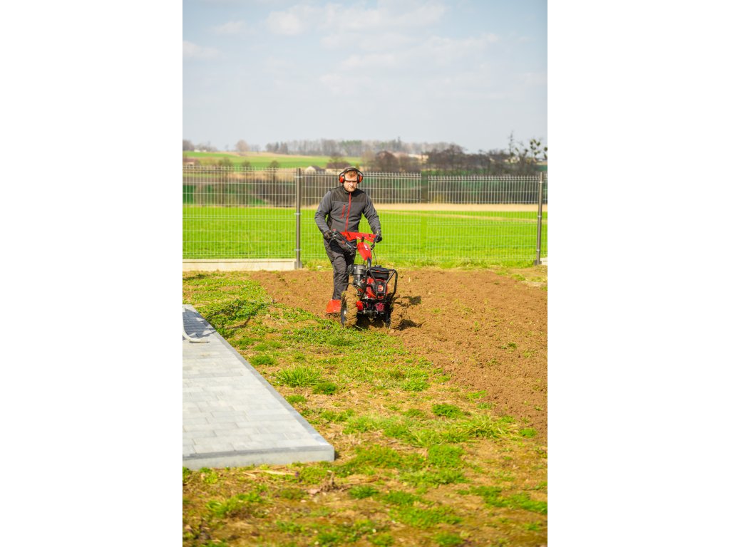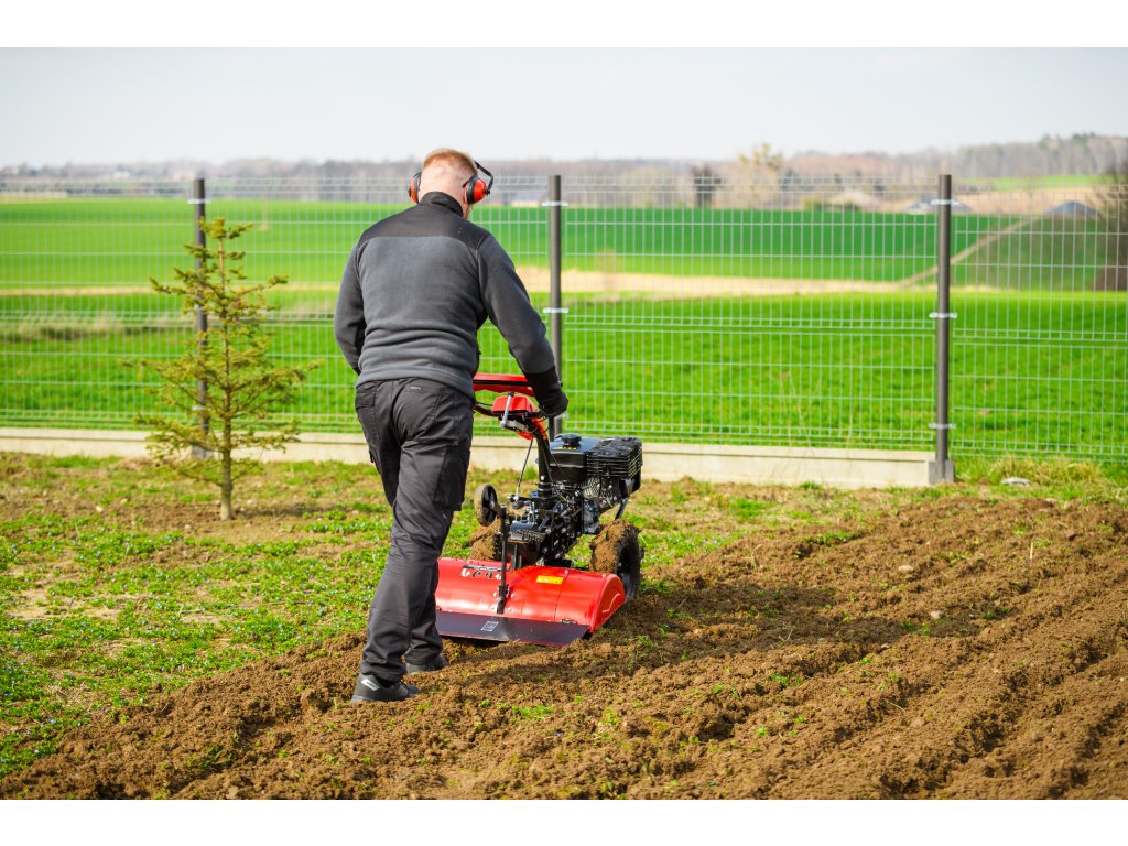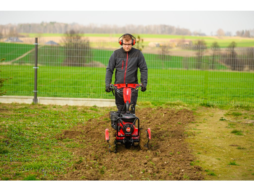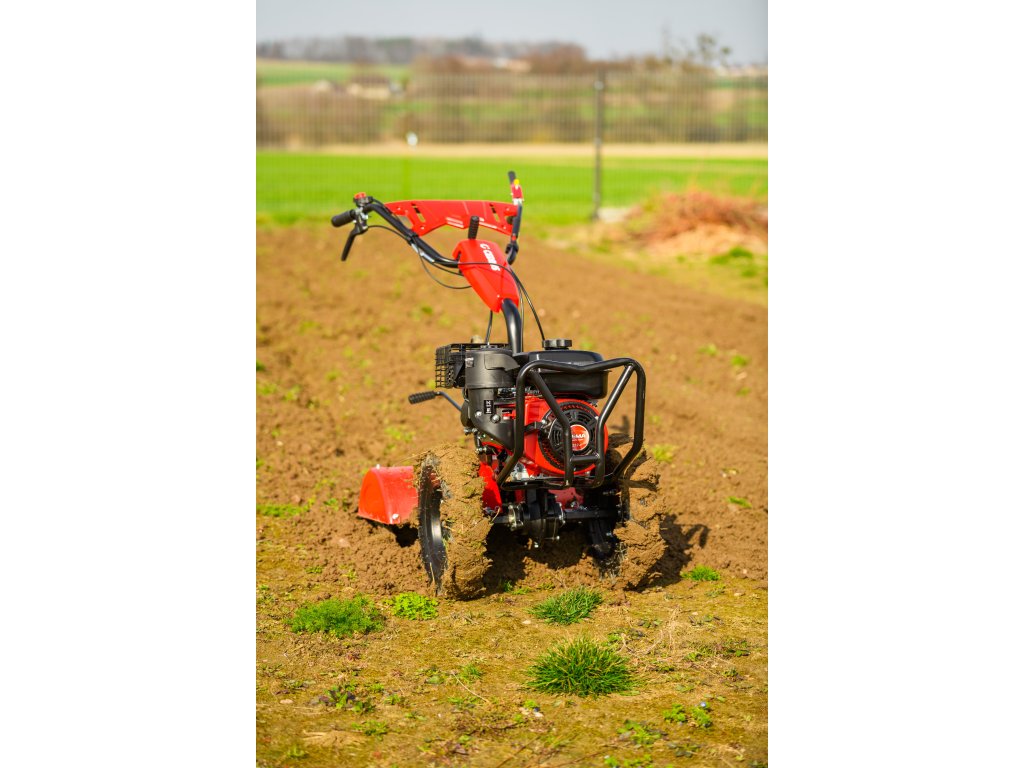 - Díky šířce záběru 620 mm a nastavitelné pracovní hloubce více než 100 mm umožňuje efektivní zpracování půdy i v těžších podmínkách. Robustní konstrukce zajišťuje dlouhou životnost a vysokou odolnost při každodenním používání.