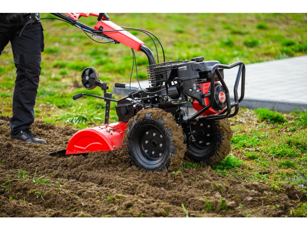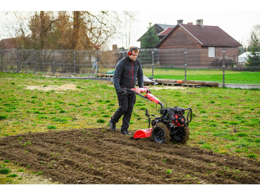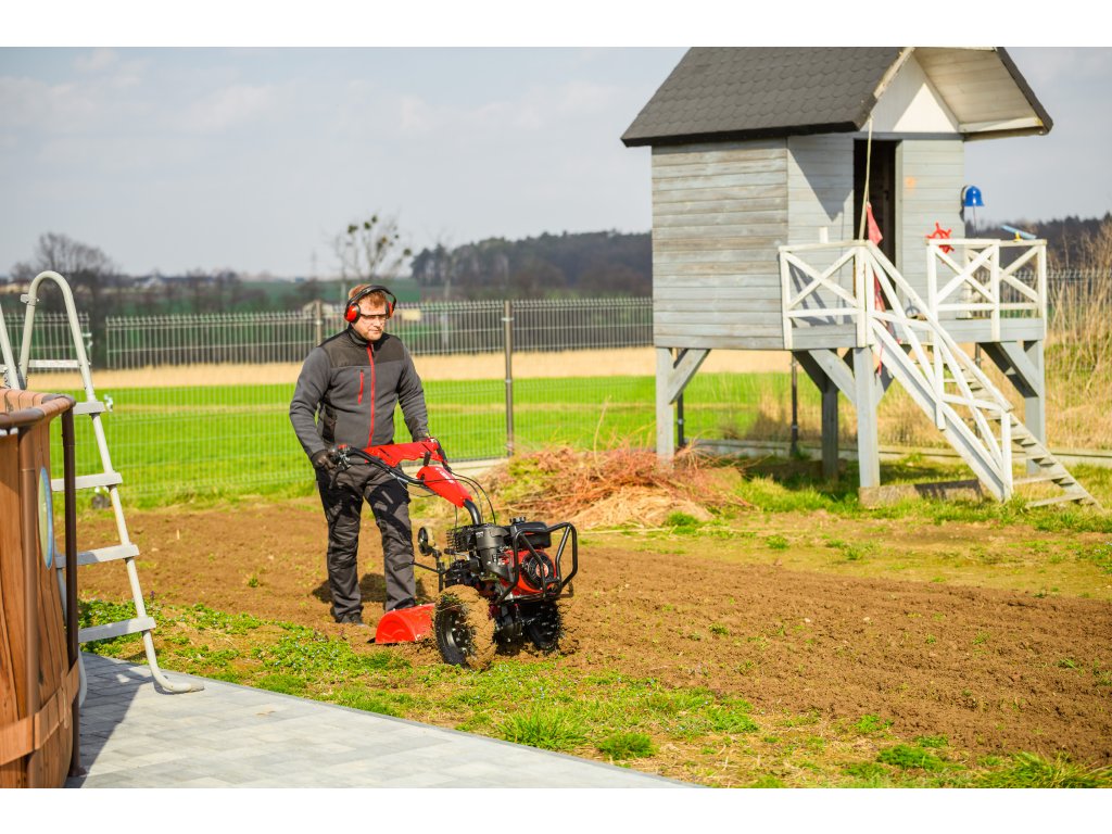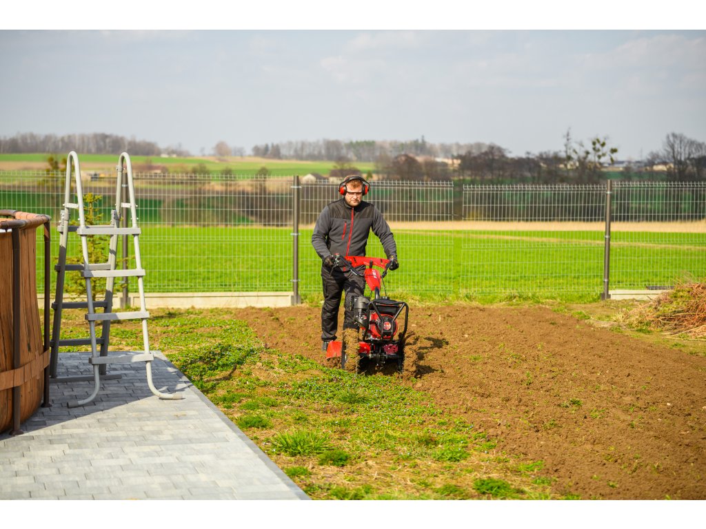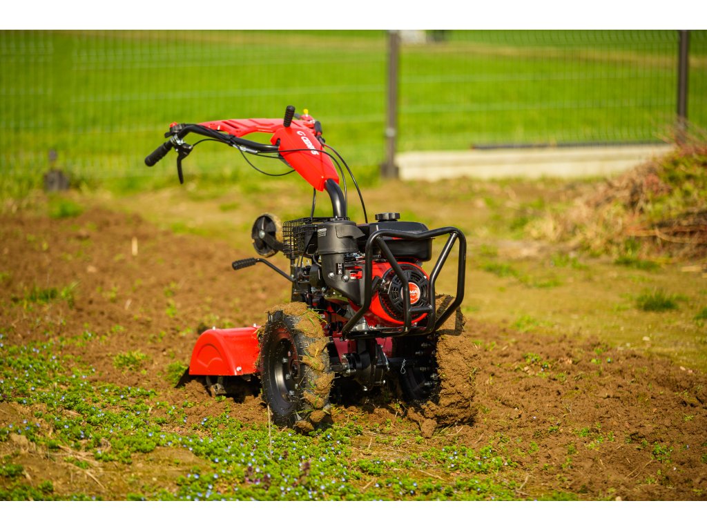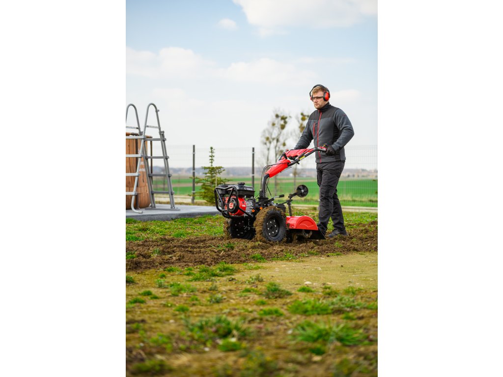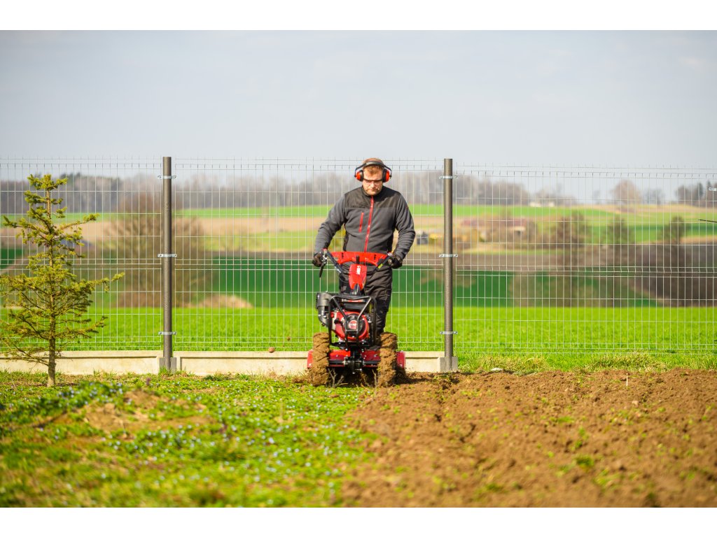 - Díky šířce záběru 620 mm a nastavitelné pracovní hloubce více než 100 mm umožňuje efektivní zpracování půdy i v těžších podmínkách. Robustní konstrukce zajišťuje dlouhou životnost a vysokou odolnost při každodenním používání.