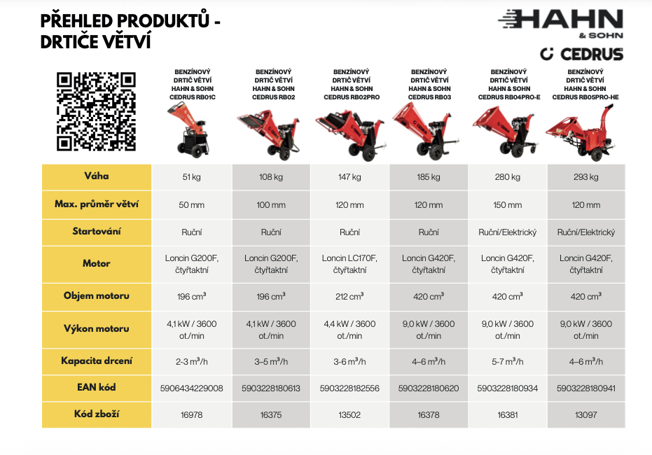 Drtiče větví Hahn & Sohn Cedrus přinášejí ideální kombinaci výkonu, spolehlivosti a jednoduché obsluhy. Ať už se chcete zbavit menšího množství větví na zahradě, nebo potřebujete stroj pro profesionální využití, v nabídce Hahn & Sohn Cedrus najdete to pravé řešení.