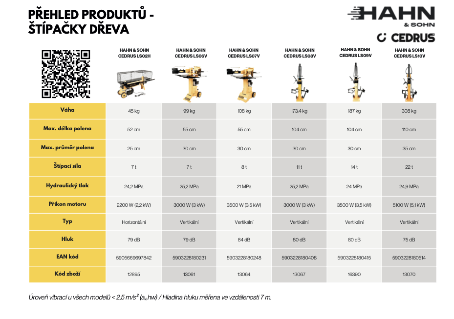 Štípání dřeva už dávno nemusí znamenat hodiny práce se sekyrou. Moderní štípačky Hahn & Sohn Cedrus přinášejí spolehlivý výkon, bezpečný provoz a výraznou úsporu času. V nabídce najdete kompaktní horizontální model pro domácí použití i výkonné vertikální stroje s obrovskou štípací silou až 22 tun, které si poradí i s těmi největšími poleny.