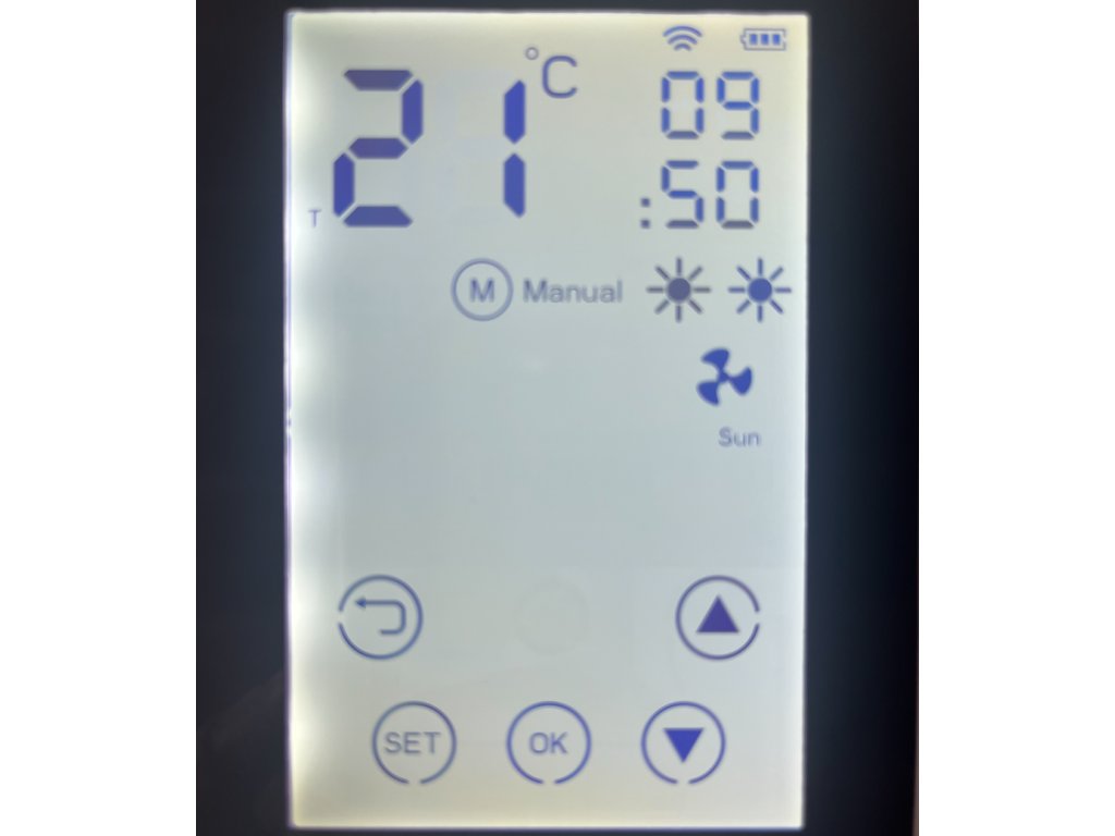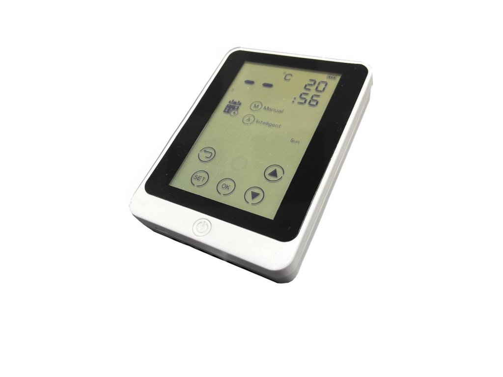 - Ovladač je vybaven přehledným podsvíceným LCD displejem, který zobrazuje aktuální teplotu, čas, zvolený provozní režim i stav zařízení. Uživatel může volit mezi manuálním režimem a inteligentním (automatickým) režimem, který optimalizuje chod topidla podle nastavených parametrů.
