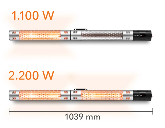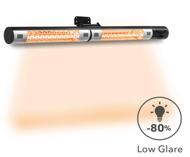 Designový infračervený zářič IR 2200 poskytuje efektivní a příjemné teplo v krytých venkovních i vnitřních prostorech. S výkonem 2 200 W a dvěma stupni ohřevu (1 100 W / 2 200 W) umožňuje rychlé zahřátí osob i povrchů bez dlouhého čekání. Technologie Low Glare snižuje světelné záření až o 80 %, čímž zajišťuje útulnou atmosféru s minimálním oslněním.