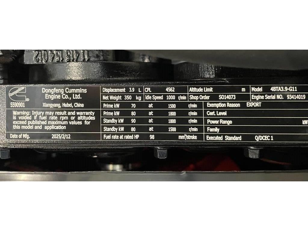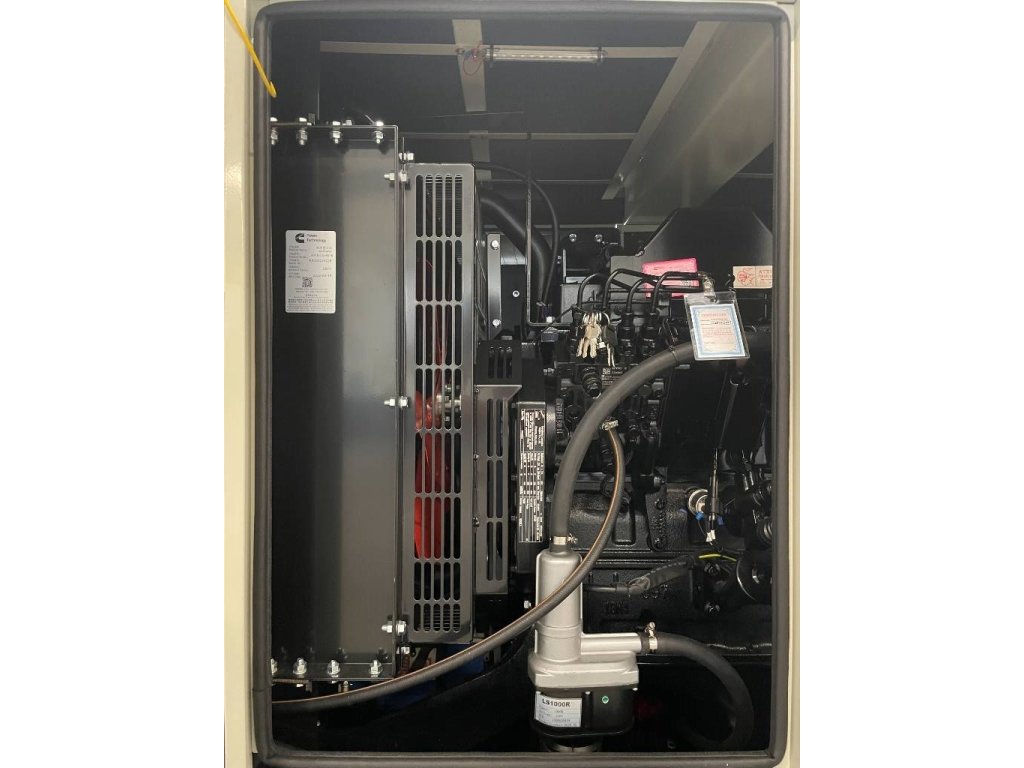 - Srdcem stroje je osvědčený čtyřválcový motor Cummins 4BTA3.9-G11 (turbo, aftercooled, přímé vstřikování), který poskytuje stabilní výkon a dlouhou životnost i při nepřetržitém provozu. V kombinaci s bezkartáčovým alternátorem Leroy Somer TAL-A44-C s přesnou regulací napětí (±0,5 %) zaručuje kvalitní a stabilní výstupní napětí 400 V / 50 Hz.