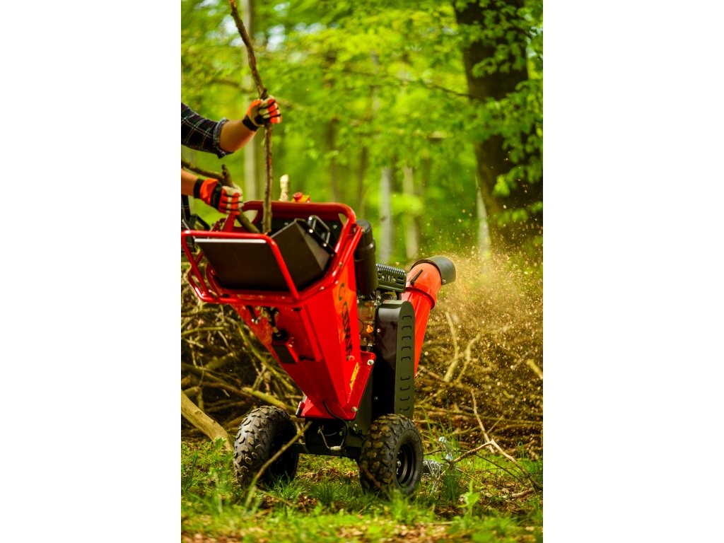 - Drtič má kompaktní rozměry, je vybaven výhozovým komínem ve výšce 87 cm a kulovým závěsem, takže je možné jej přepravovat za zahradním traktorem nebo čtyřkolkou. Díky výkonu až 6 m³/h se hodí pro běžné zemědělské, komunální i lesní práce.