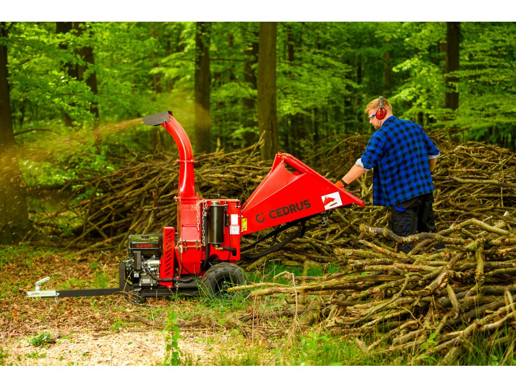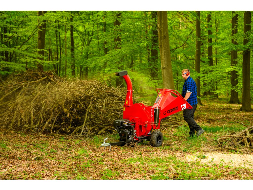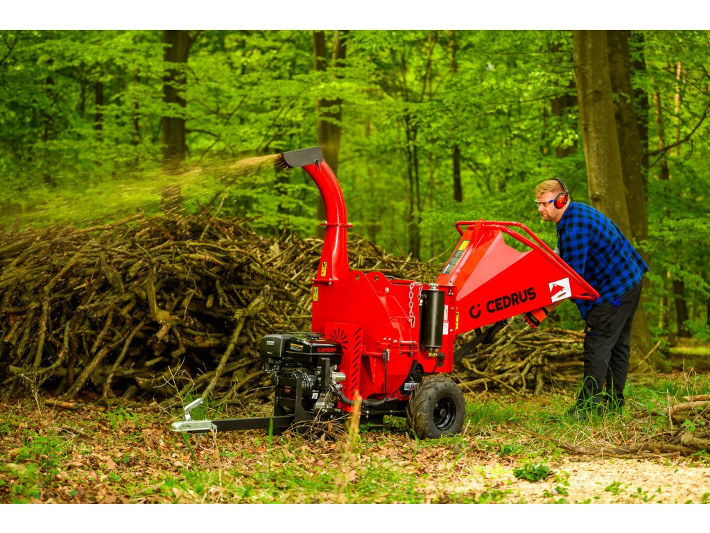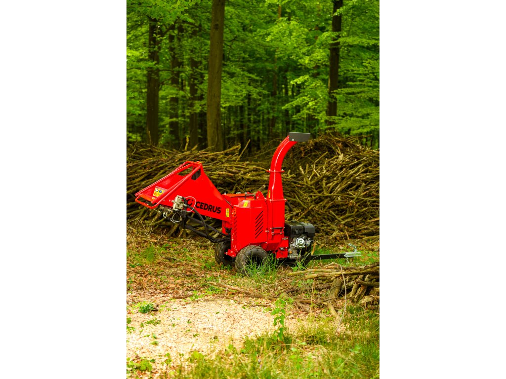 Model CEDRB05PRO-HE od značky Cedrus je výkonný profesionální rozdrabňovač větví, navržený pro intenzivní práci při údržbě sadů, lesů či parkových ploch. Stroj je vybaven čtyřtaktním motorem Loncin G420F o výkonu 9 kW (420 cm³) s elektrickým startem, což výrazně usnadňuje obsluhu. Systém podávání větví je plně hydraulický, s plynulou regulací rychlosti v rozmezí 0–600 ot./min.