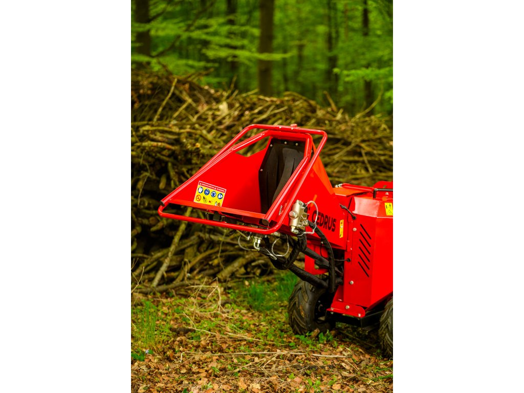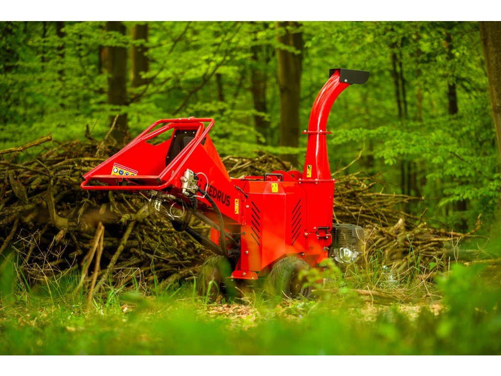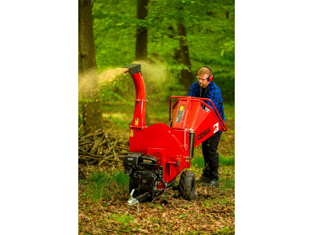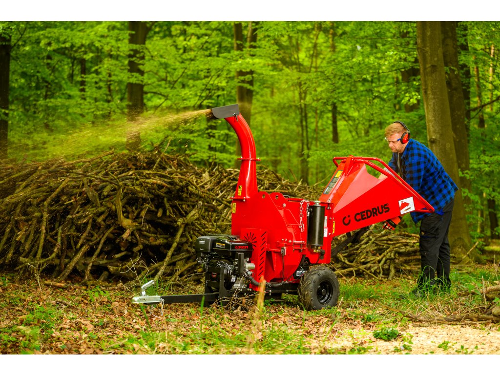 Model CEDRB05PRO-HE od značky Cedrus je výkonný profesionální rozdrabňovač větví, navržený pro intenzivní práci při údržbě sadů, lesů či parkových ploch. Stroj je vybaven čtyřtaktním motorem Loncin G420F o výkonu 9 kW (420 cm³) s elektrickým startem, což výrazně usnadňuje obsluhu. Systém podávání větví je plně hydraulický, s plynulou regulací rychlosti v rozmezí 0–600 ot./min.