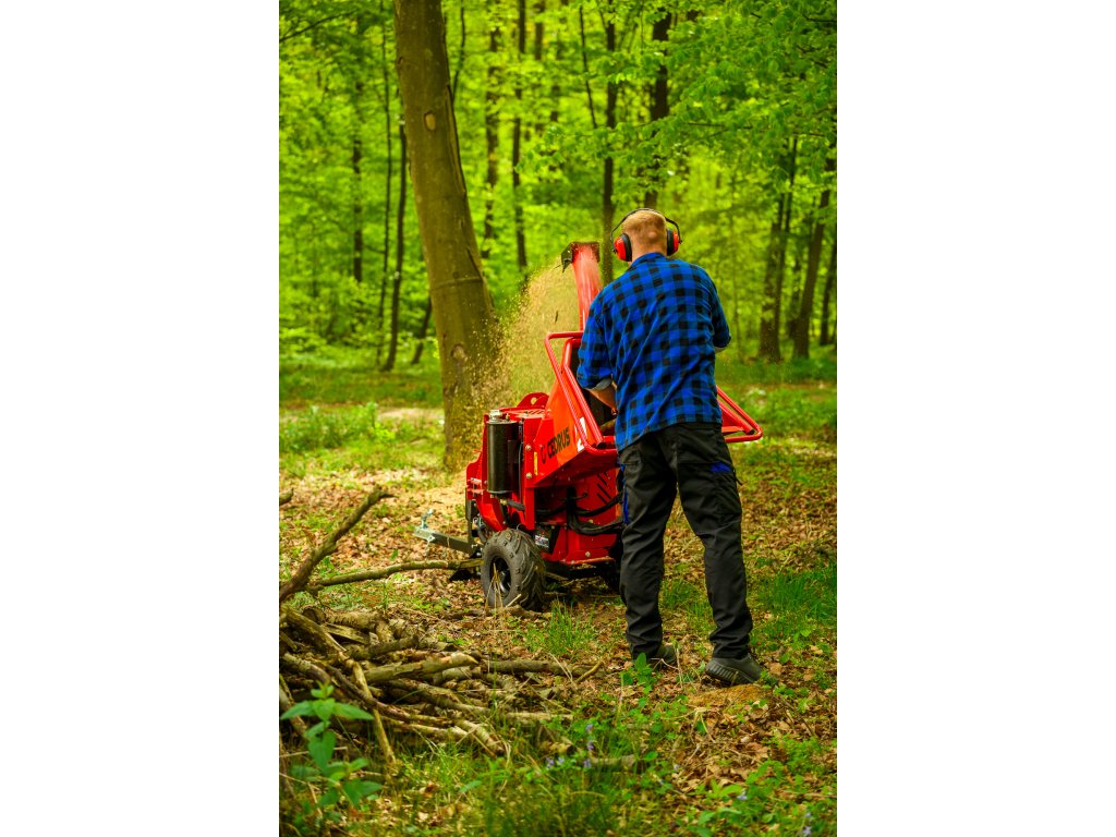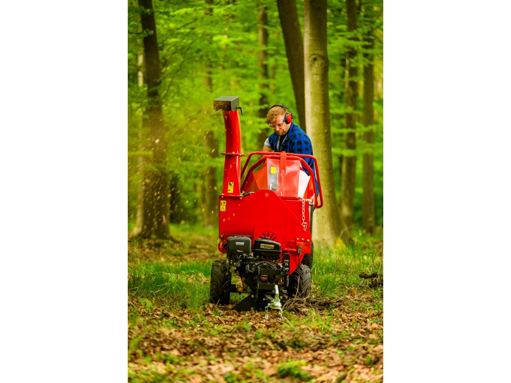 - Drticí jednotku tvoří kombinace 2 nožů na rotoru, 1 kontrnože a 10 rozdrabňovacích ostrí, které efektivně zpracují i větší větve. Maximální průměr zpracovávaného materiálu je 12 cm. Výstupní komín je plně otočný a výškově nastavitelný, což umožňuje snadné řízení směru výhozu.