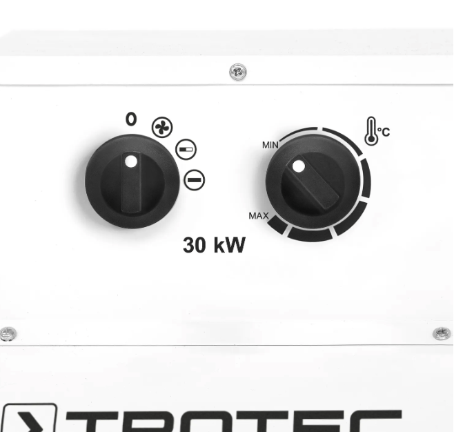 Výkonné elektrické topidlo s výkonem až 30 kW, ideální pro vytápění velkých prostor, stavebních hal a skladů.