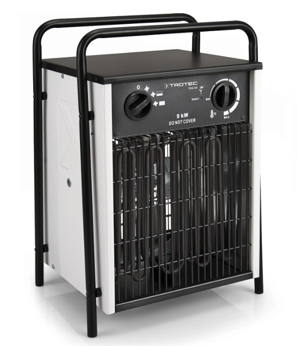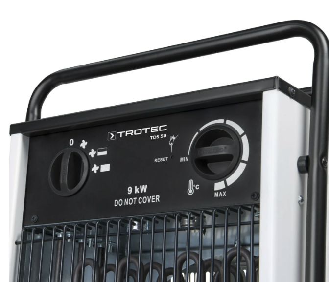 Je vhodné pro nepřetržitý provoz a díky madlům je snadno přenosné. Model TDS 50 nabízí možnost provozu pouze ventilátoru nebo dvou úrovní vytápění – 4500 W a 9000 W.