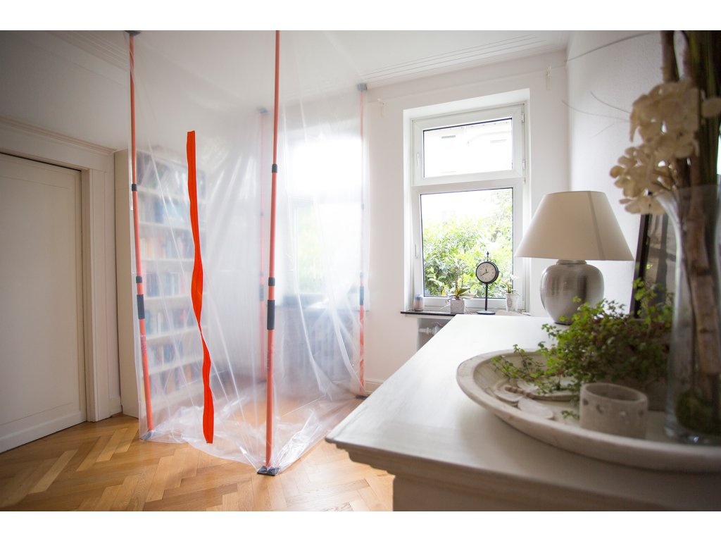 The HEYWALL Dustproof Wall ensures clean rooms during renovation or refurbishment work and prevents unpleasant re-cleaning. The module system comprises aluminium columns up to 3.60 m high, which create a dust-tight barrier thanks to the foil and a convenient entry or exit via a self-adhesive zipper (length 220 cm). It can be set up as an L or U-shaped room divider or as a polygon.
