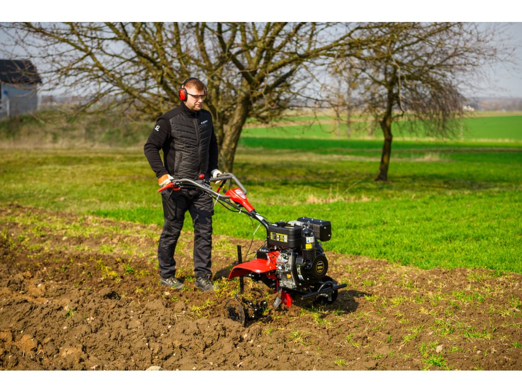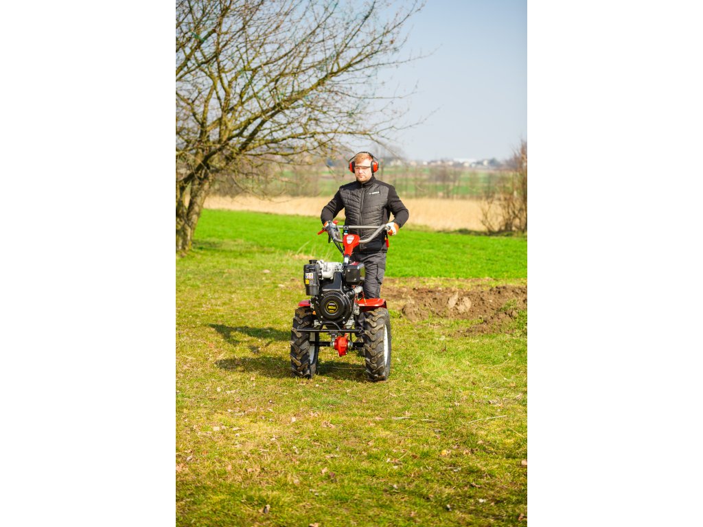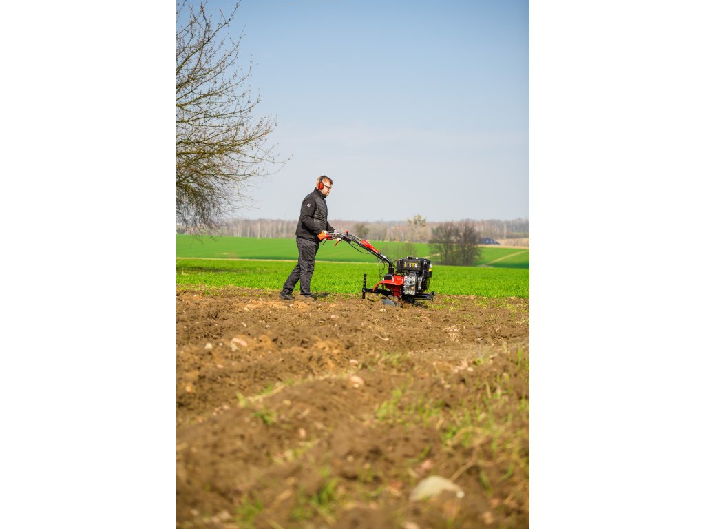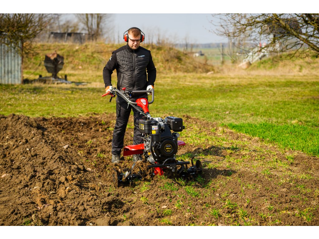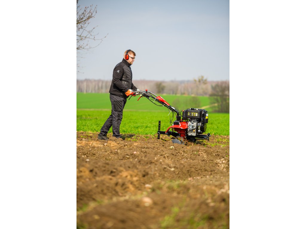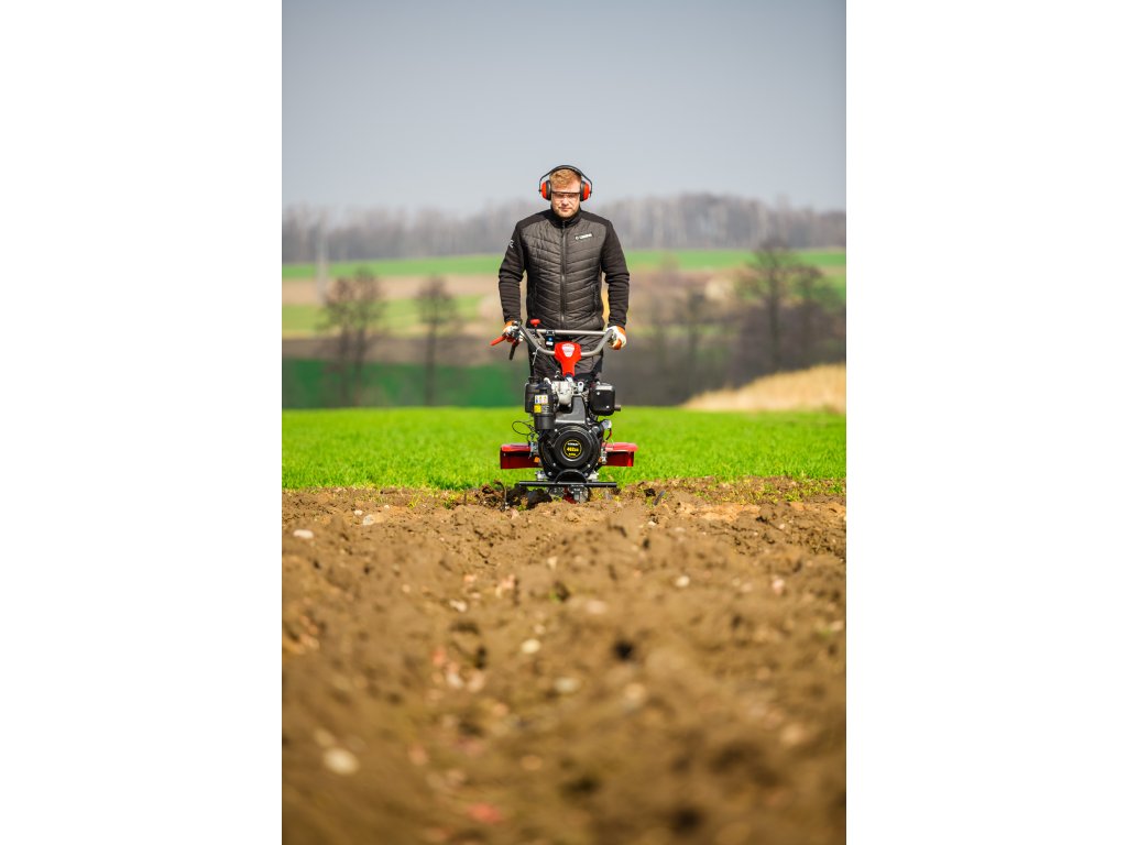 - Fréza umožňuje práci v šířce 103 cm a hloubce až 180 mm, což výrazně zvyšuje efektivitu při kultivaci velkých ploch. Převodovka s 2 rychlostmi vpřed a 1 vzad zajišťuje plynulé manévrování. Systém 4+4 nože, odolné blatníky, silný rám, velká kola a možnost regulace rukojeti ve všech směrech zaručují pohodlí, odolnost a stabilitu při každodenním používání.