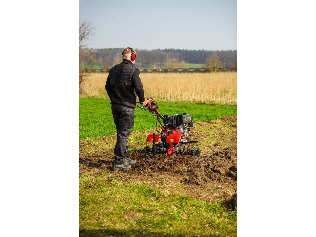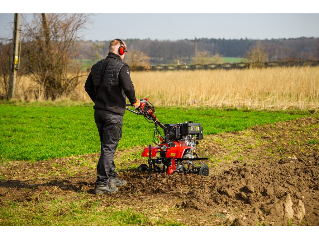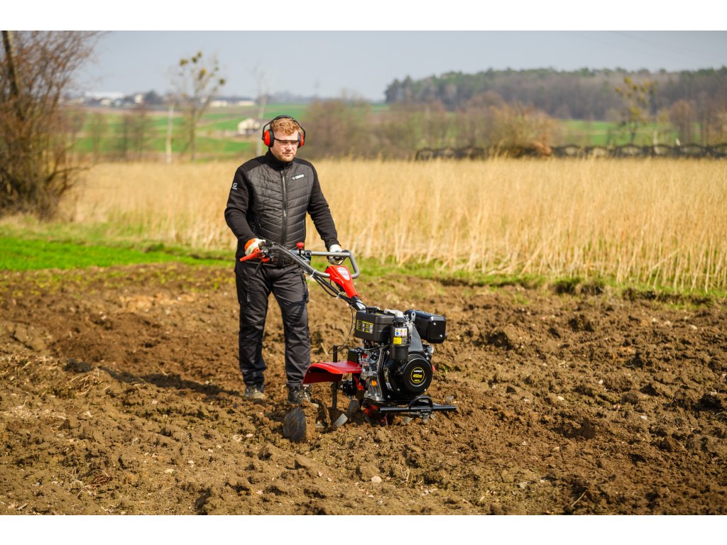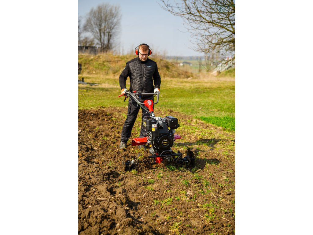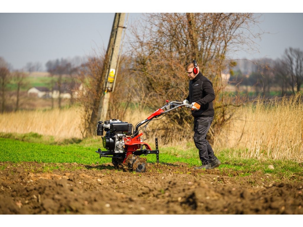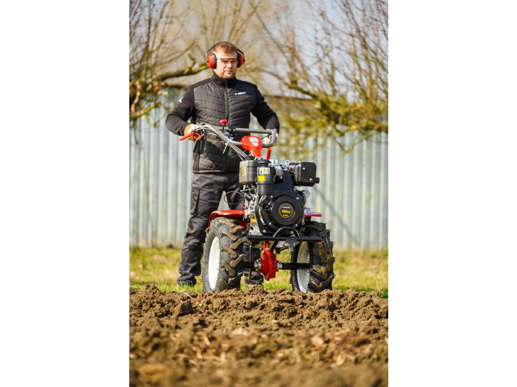 - Fréza umožňuje práci v šířce 103 cm a hloubce až 180 mm, což výrazně zvyšuje efektivitu při kultivaci velkých ploch. Převodovka s 2 rychlostmi vpřed a 1 vzad zajišťuje plynulé manévrování. Systém 4+4 nože, odolné blatníky, silný rám, velká kola a možnost regulace rukojeti ve všech směrech zaručují pohodlí, odolnost a stabilitu při každodenním používání.