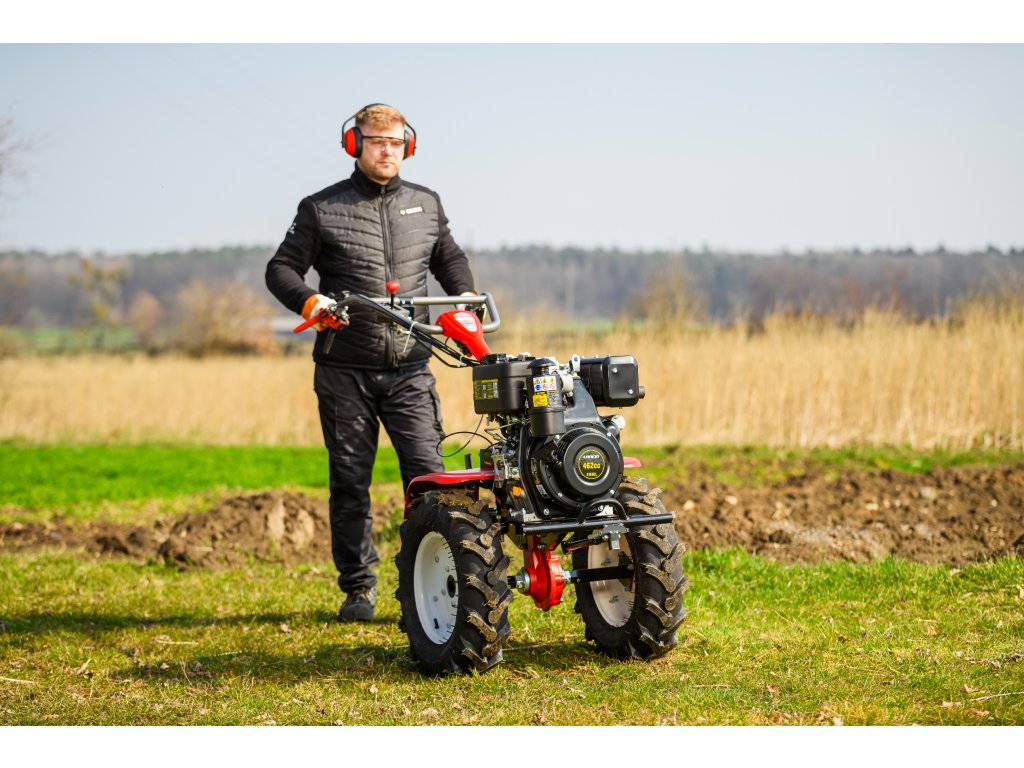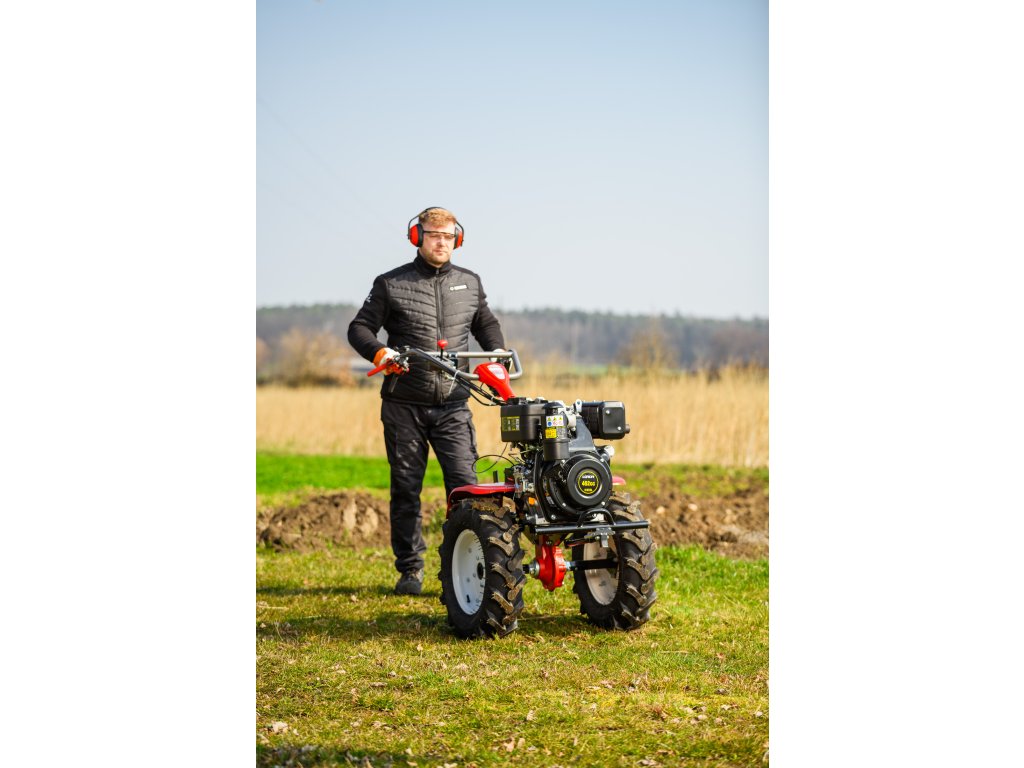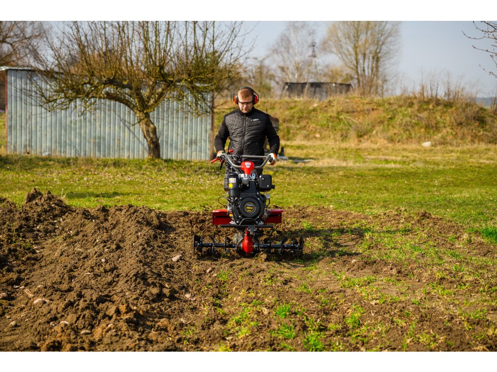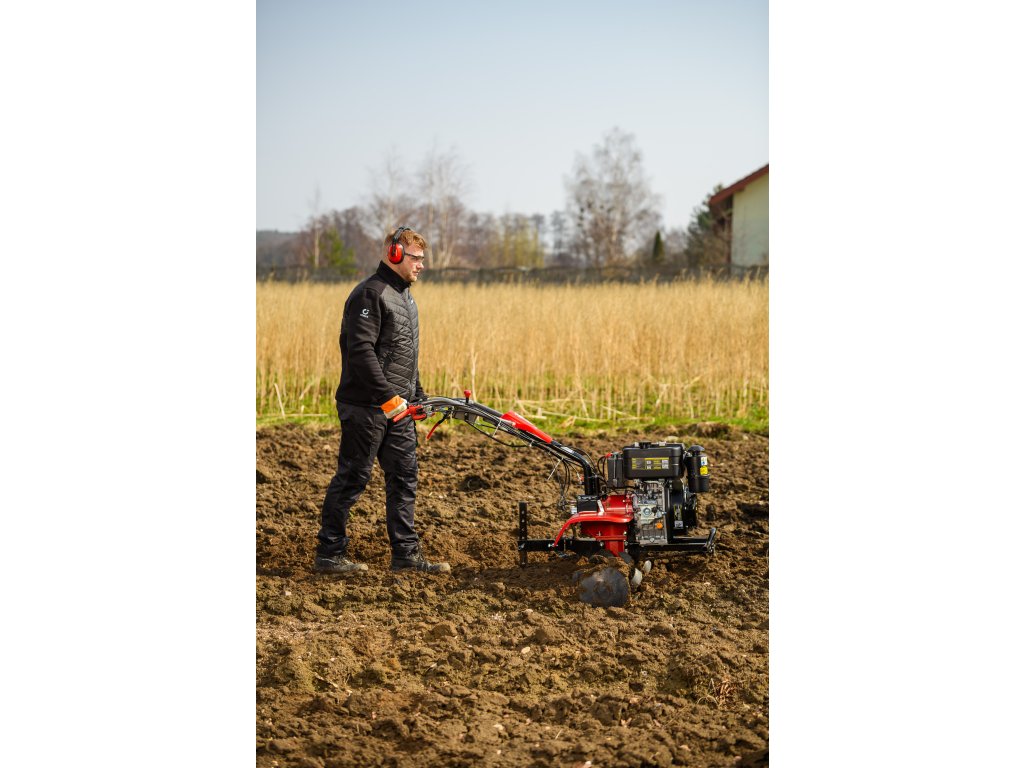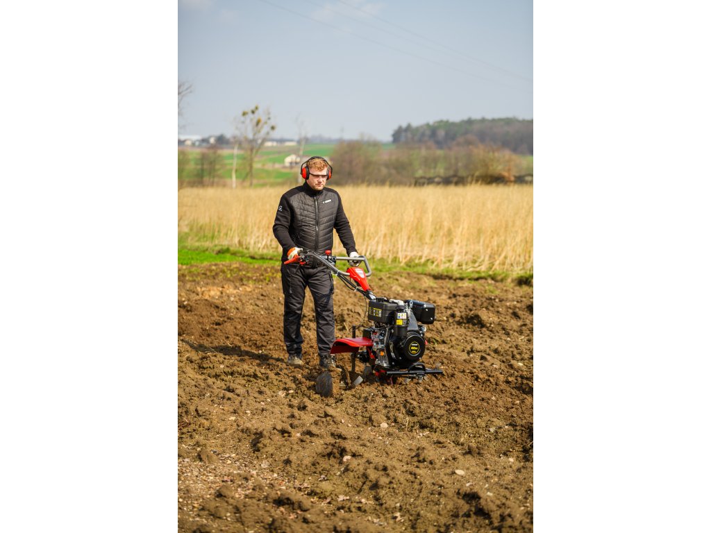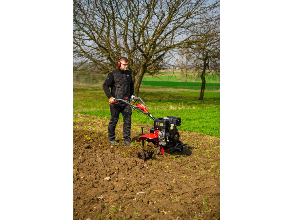 - Fréza umožňuje práci v šířce 103 cm a hloubce až 180 mm, což výrazně zvyšuje efektivitu při kultivaci velkých ploch. Převodovka s 2 rychlostmi vpřed a 1 vzad zajišťuje plynulé manévrování. Systém 4+4 nože, odolné blatníky, silný rám, velká kola a možnost regulace rukojeti ve všech směrech zaručují pohodlí, odolnost a stabilitu při každodenním používání.