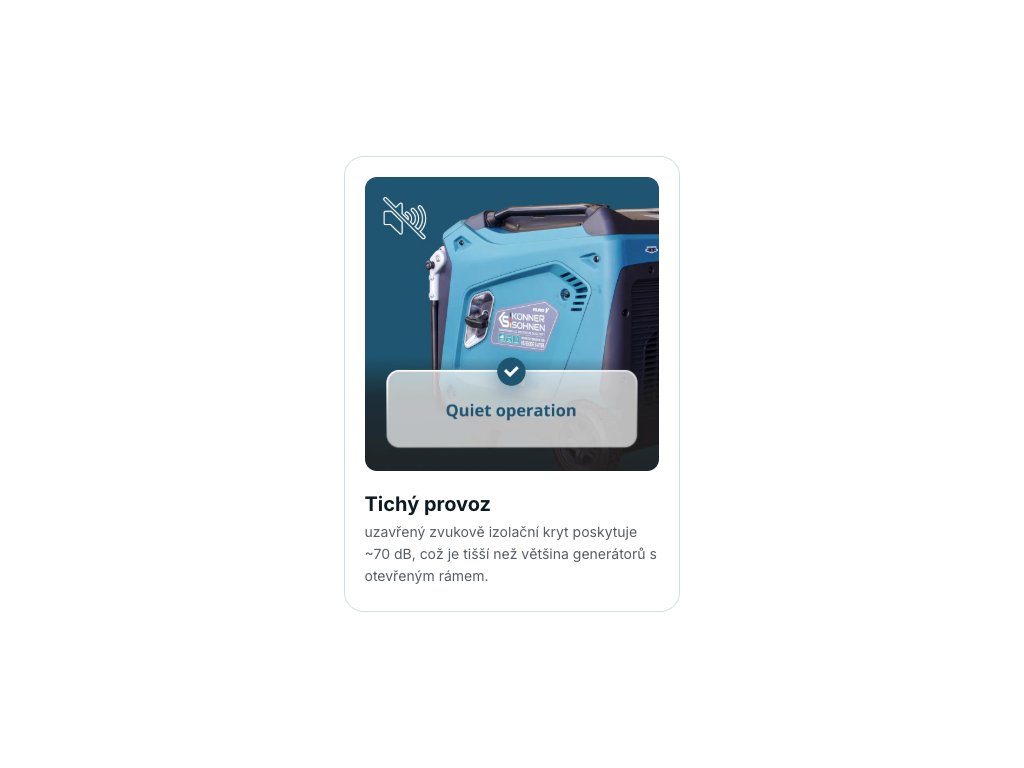 Tichý provoz cca 70 dB díky uzavřenému odhlučněnému krytu