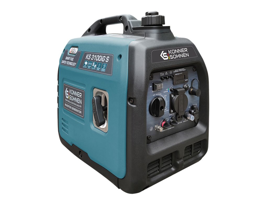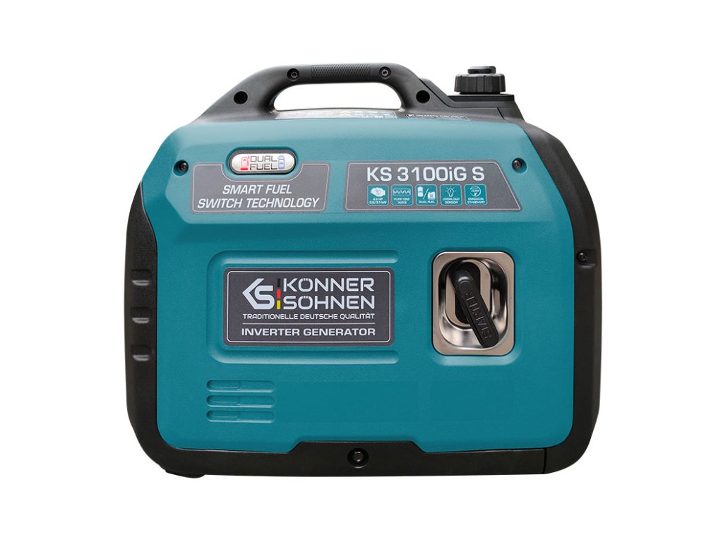 Invertorový generátor na LPG/benzín KS 3100iG S německé značky „Könner & Söhnen“ v odhlučněném krytu slouží jako pohodlný, přenosný a tichý zdroj energie. Hlavní vlastností tohoto modelu je, že poskytuje čistou sinusovou vlnu elektrické energie.