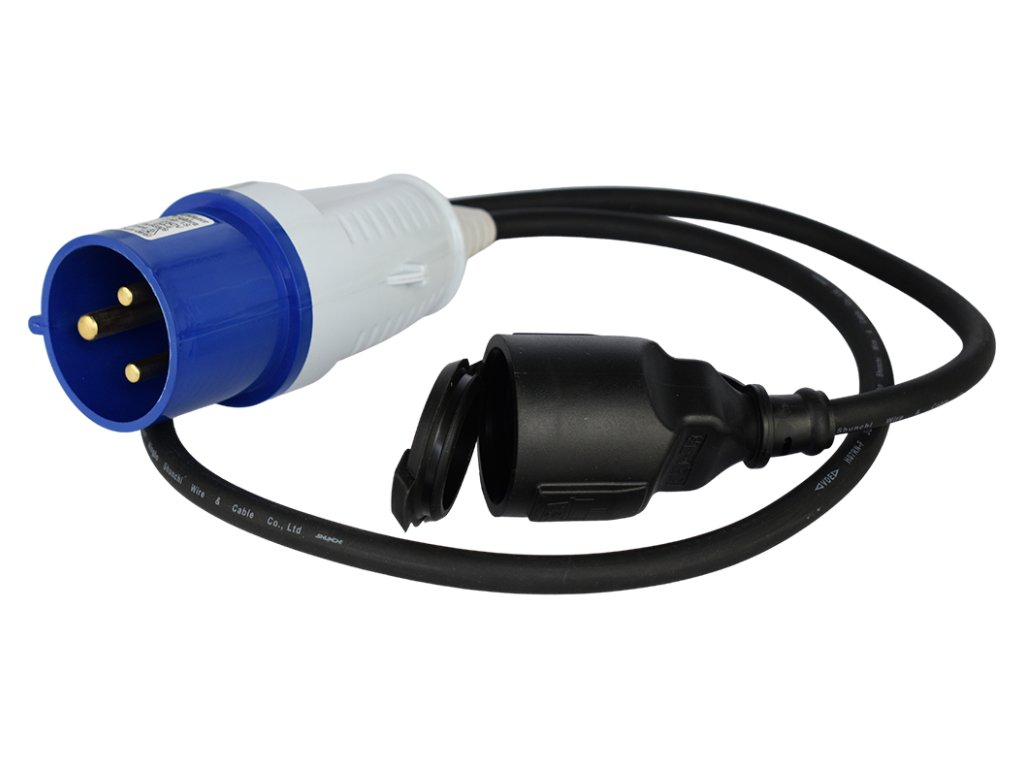 Na jedné straně má adaptér zástrčku 32A, na druhé straně – 16A zásuvku se zátěží až 5 kW.