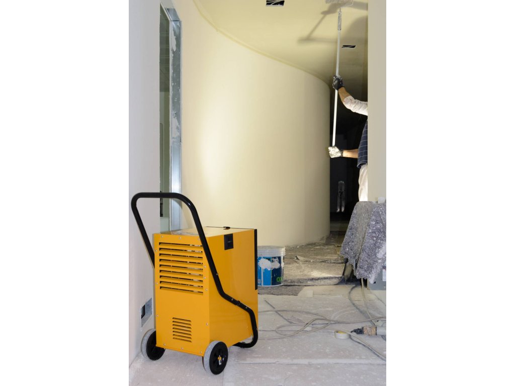 odvlhčovač vzduchu, provedení kovové, zabraňuje tvoření rzí, plísní a skvrn, zlepšují podmínky vysoušení, urychlují vysoušecí proces v objektech poškozených vodou, přístroj se automaticky vypne, když je nádrž plná nebo při špatné poloze odvlhčovače.