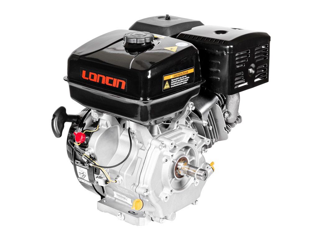 Výkonný benzínový motor Loncin G390F-A s výkonem 8,2 kW a hřídelí Ø25 mm / 60 mm – ideální pro náročné stroje a profesionální použití.
