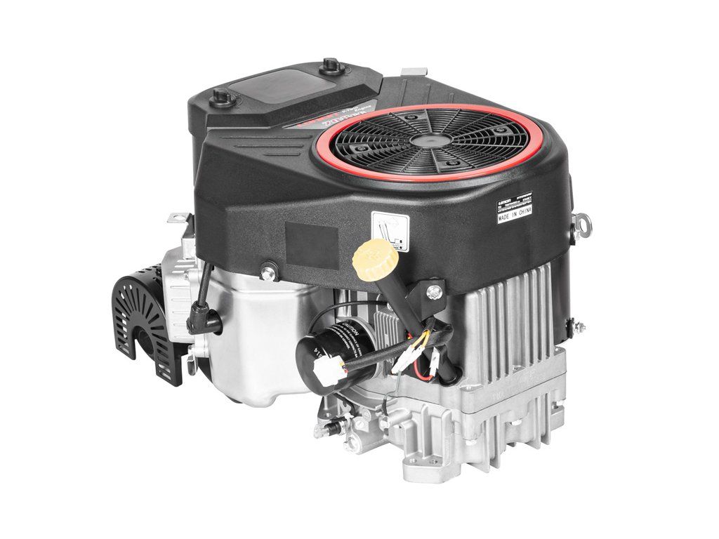 Profesionální dvouválcový motor Loncin LC2P77F-A (V-Twin) s výkonem 16 kW, vertikální hřídelí a elektrickým startem – ideální pro zahradní traktory a sekačky.
