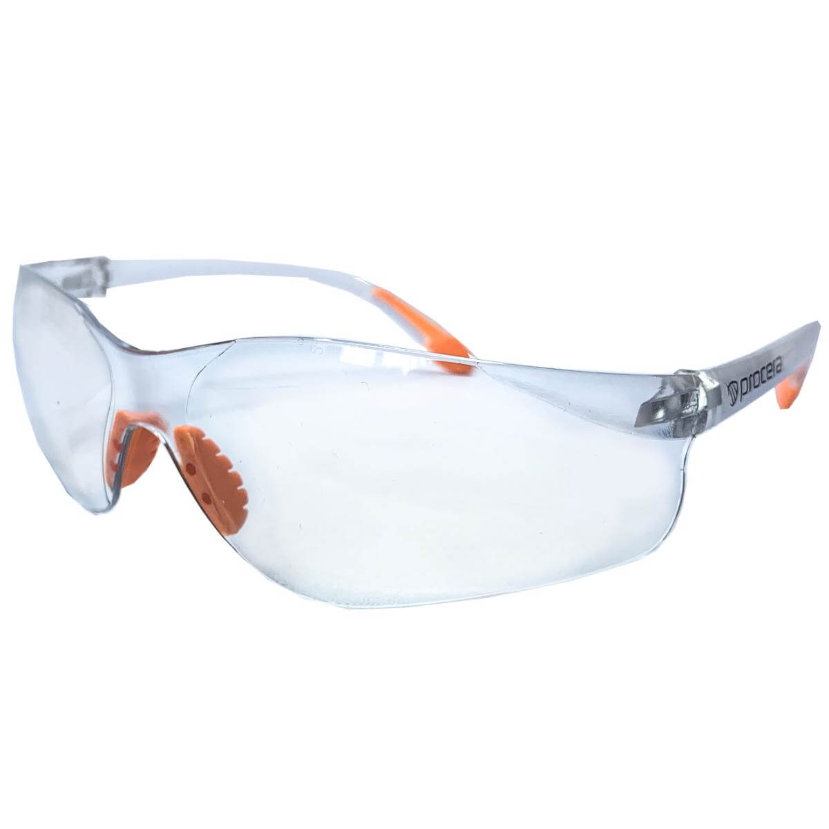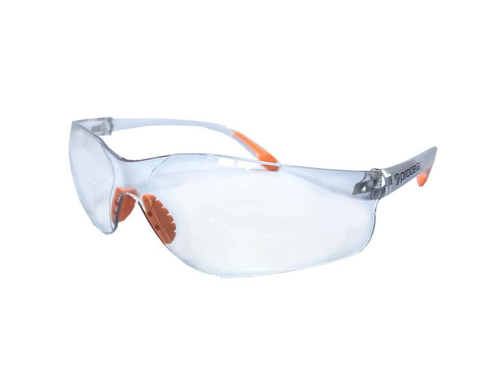 Lehké ochranné brýle s čirými skly z polykarbonátu, které poskytují široké zorné pole a ochranu proti mechanickému poškození.