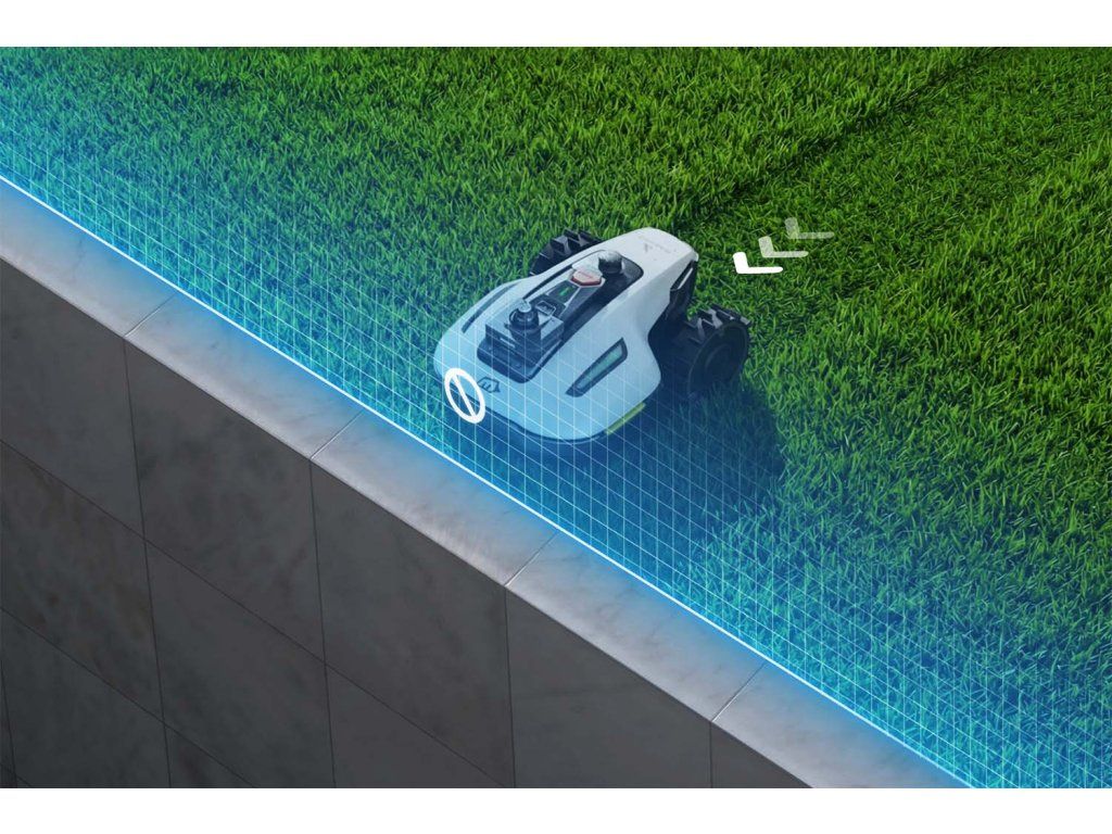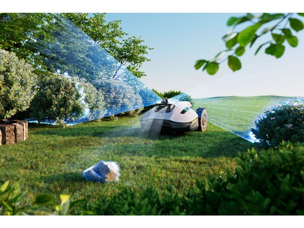 - Díky výkonnému AI čipu dokáže rozpoznat více než 300 typů objektů a předvídat jejich pohyb, což zajišťuje bezpečné sečení v blízkosti překážek, dětí i domácích mazlíčků.