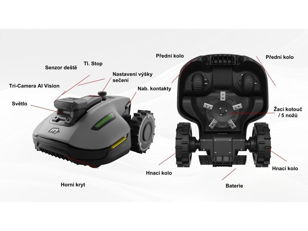 - Sekačka využívá pokročilý AI čip s extrémním výkonem, který umožňuje rozpoznání více než 300 typů objektů v reálném čase. Díky tomu se bezpečně vyhýbá překážkám, chrání děti i domácí mazlíčky a zajišťuje plynulý chod i v členitém prostředí.