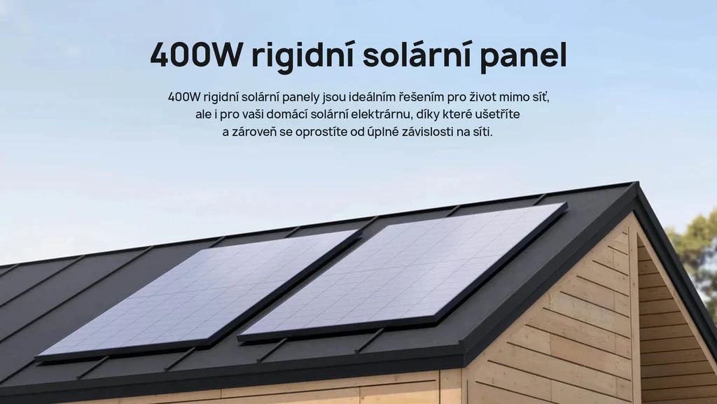 - Vysoký výkon: Každý panel poskytuje 400 W, což zajišťuje rychlé a efektivní získávání energie.