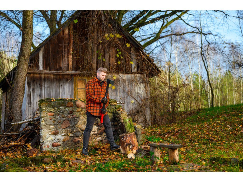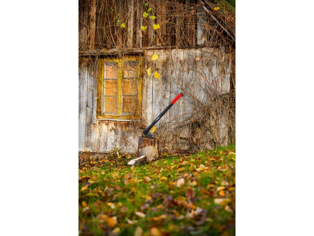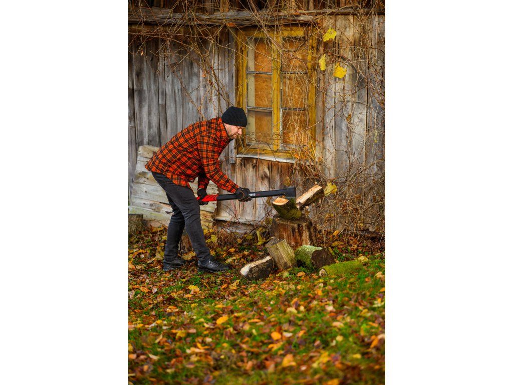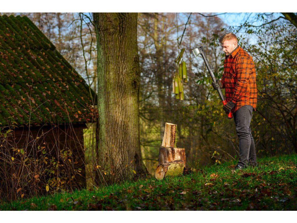 - Dlouhá rukojeť z odolného vláknového skla umožňuje silné, přesné údery s minimálním úsilím. Je lehká, mimořádně pevná a odolná proti nárazům. Protiskluzový ergonomický úchop zajišťuje bezpečné držení sekery i při intenzivním štípání.