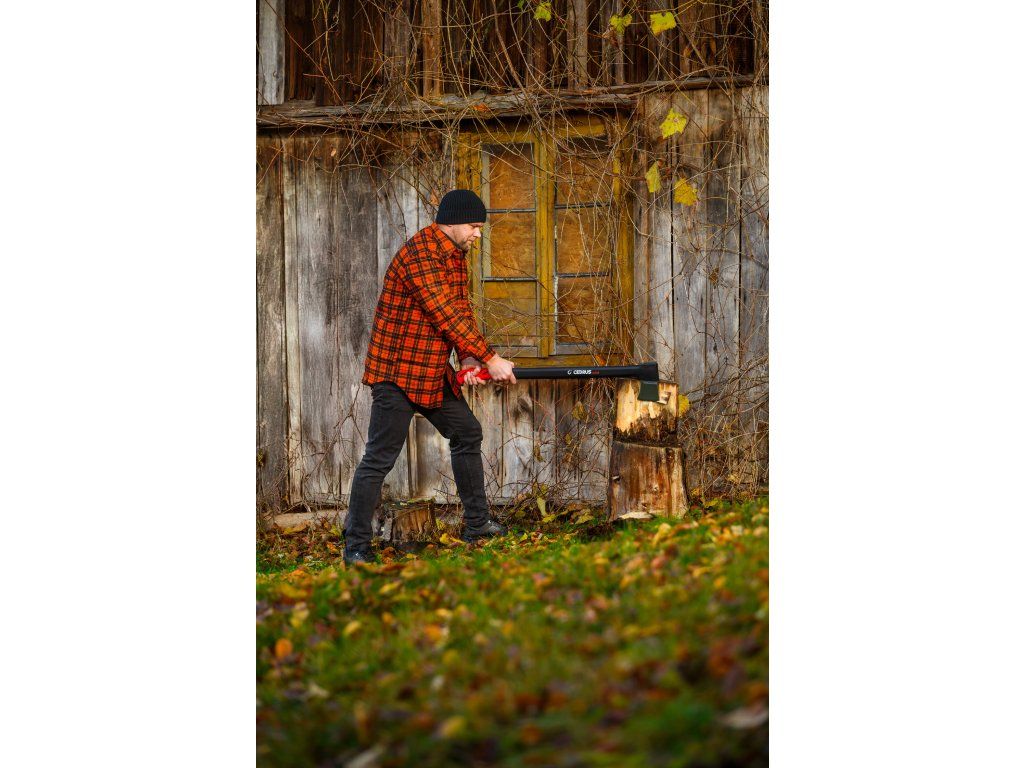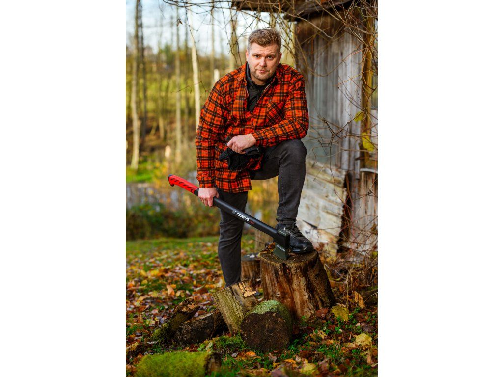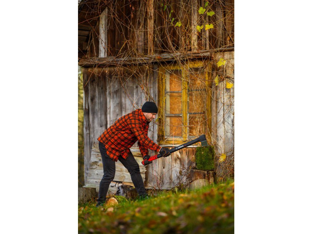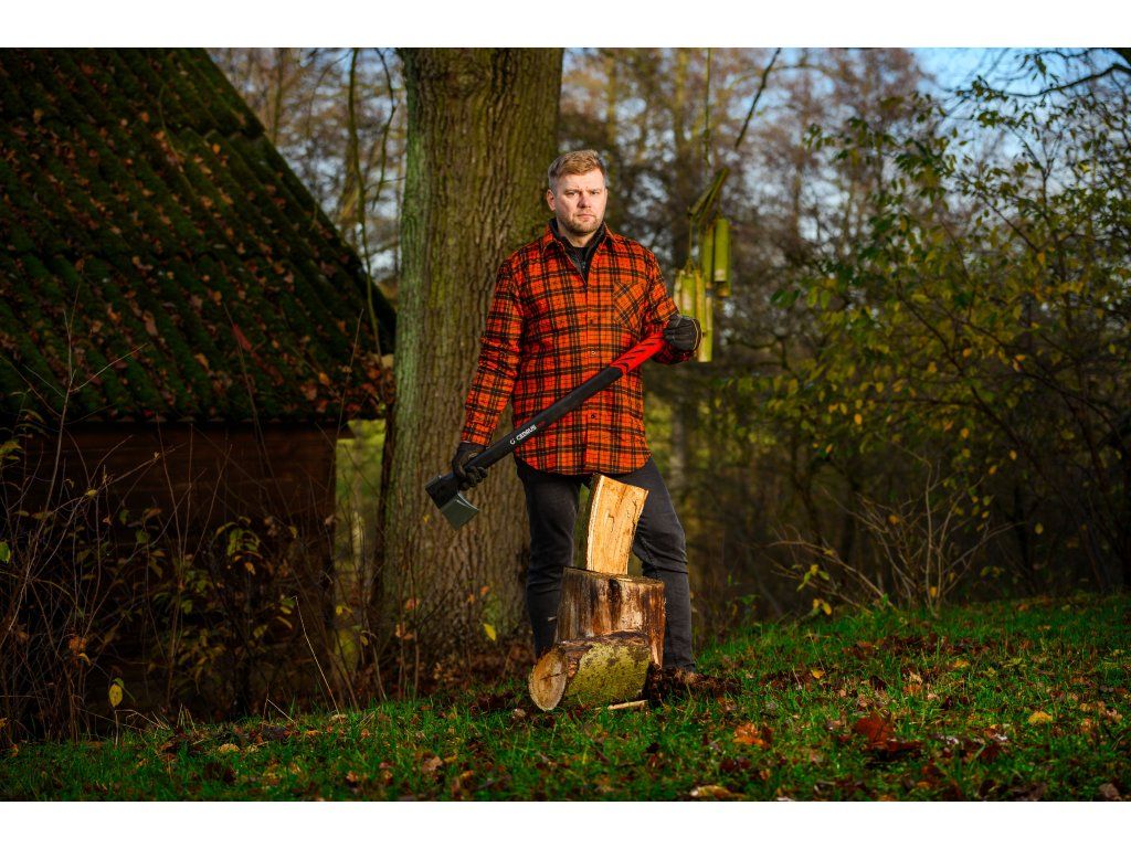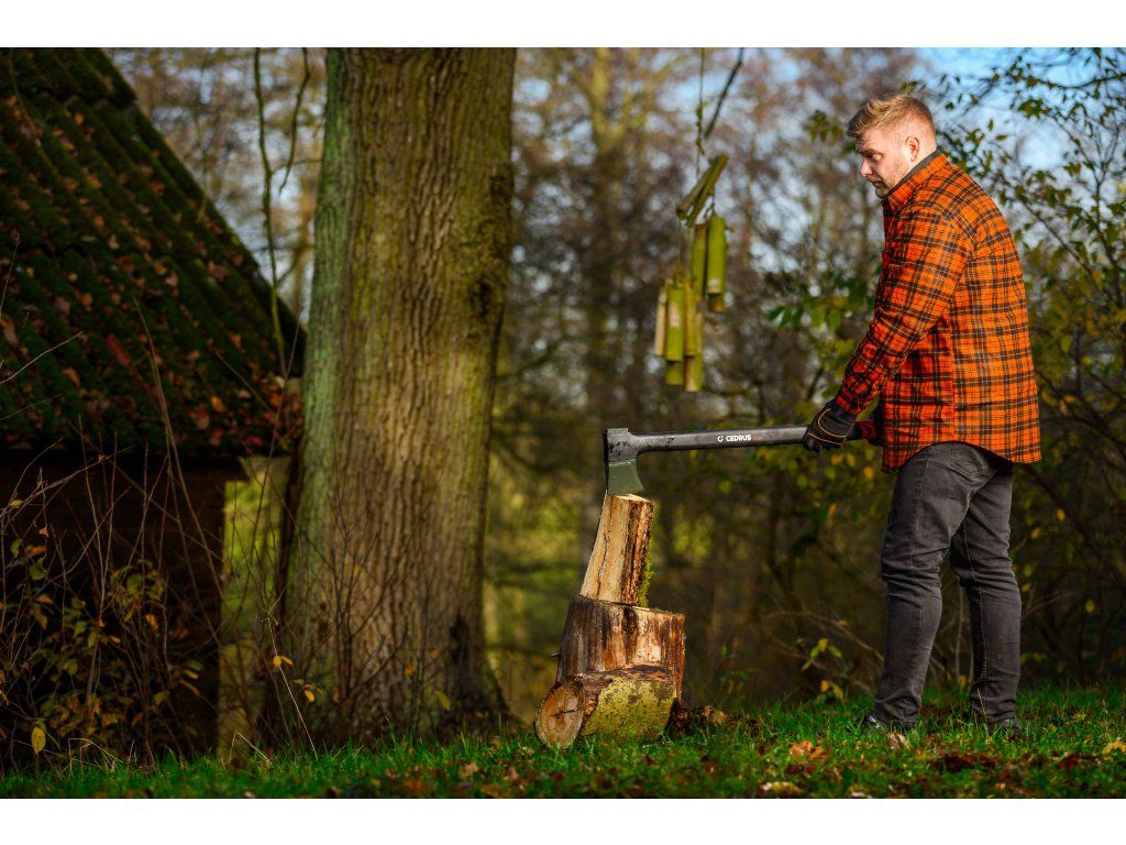 Cedrus AX28 je profesionální štípací sekera s délkou 970 mm a celkovou hmotností 2,65 kg, určená pro štípání velkých polen a tvrdého dřeva. Kombinuje masivní kovanou hlavu z uhlíkové oceli s PTFE povrchovou úpravou a pevnou rukojeť z vláknového skla, která zaručuje vysokou odolnost, bezpečnost i pohodlí při práci.