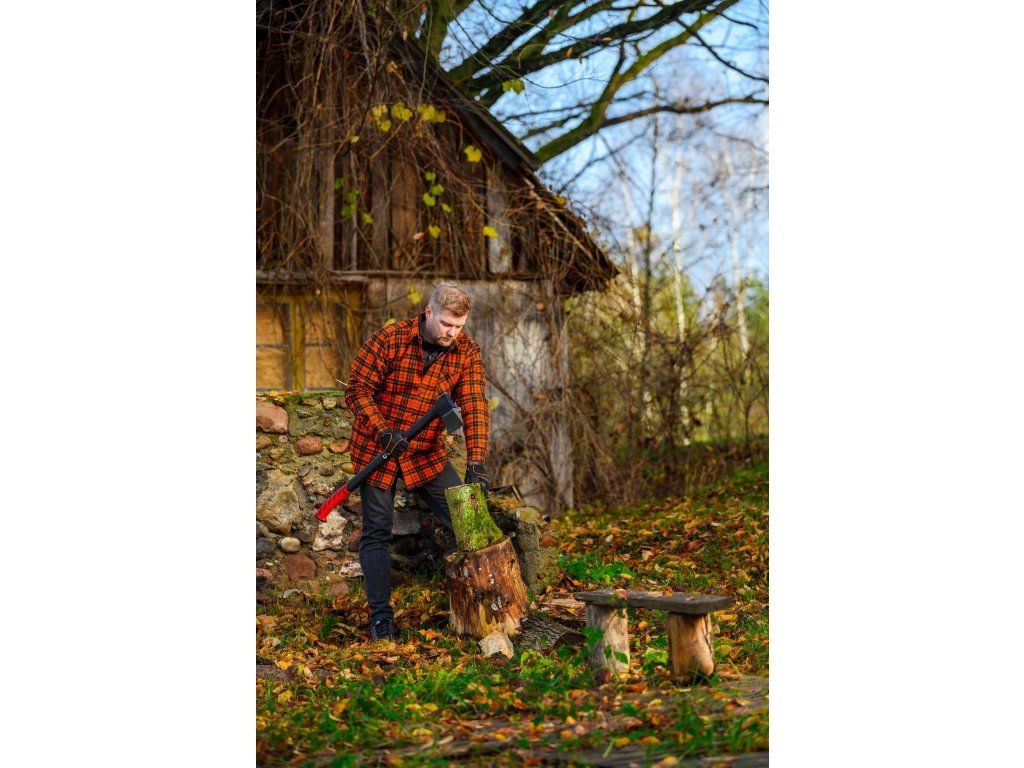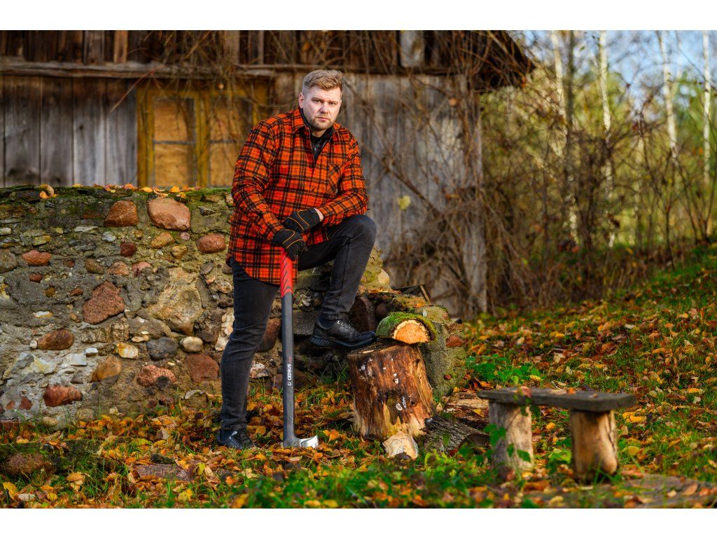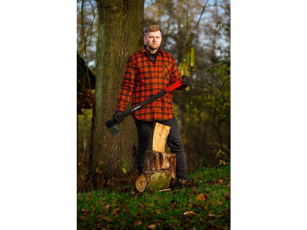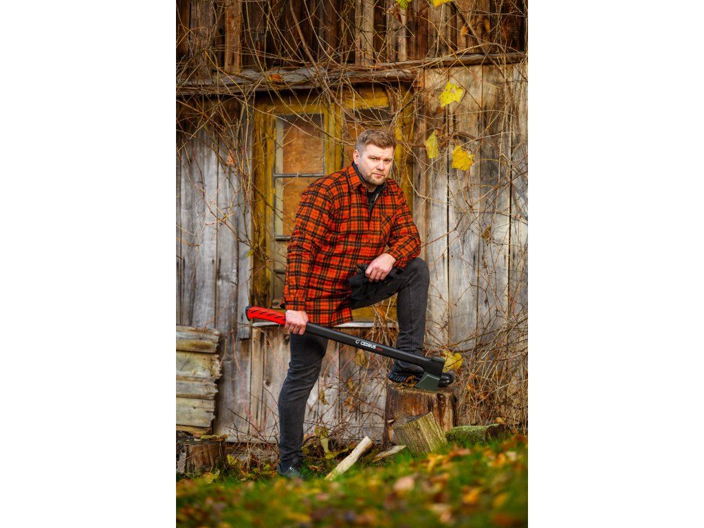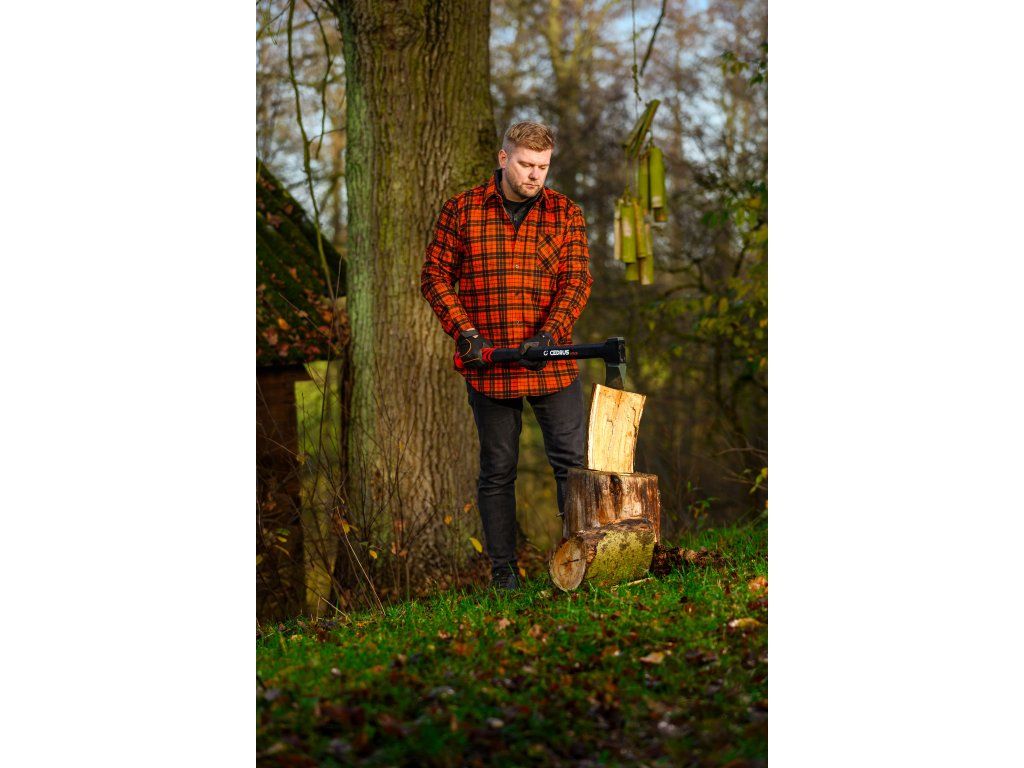 Cedrus AX28 je profesionální štípací sekera s délkou 970 mm a celkovou hmotností 2,65 kg, určená pro štípání velkých polen a tvrdého dřeva. Kombinuje masivní kovanou hlavu z uhlíkové oceli s PTFE povrchovou úpravou a pevnou rukojeť z vláknového skla, která zaručuje vysokou odolnost, bezpečnost i pohodlí při práci.