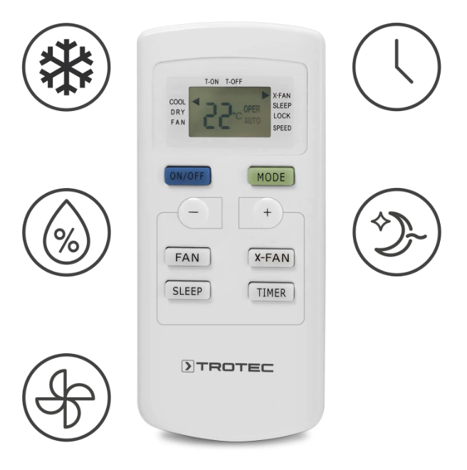 PAC 2010 E kombinuje tři funkce v jednom zařízení: chlazení, ventilaci a odvlhčování. Díky kompaktním rozměrům a hmotnosti 24,5 kg je snadno přenosná a ideální pro použití v různých místnostech, jako jsou obývací pokoje, ložnice nebo kanceláře. Zařízení je vybaveno LED displejem a dálkovým ovládáním pro pohodlné nastavení požadovaných parametrů.