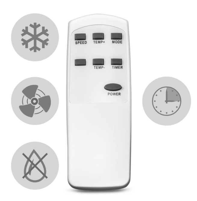 Zařízení je vybaveno LED displejem a intuitivním ovládacím panelem pro snadné nastavení požadovaných parametrů. Dálkové ovládání umožňuje pohodlné řízení funkcí na dálku. Kompaktní design, integrovaná kolečka a držadlo usnadňují přemístění jednotky mezi různými místnostmi podle potřeby.