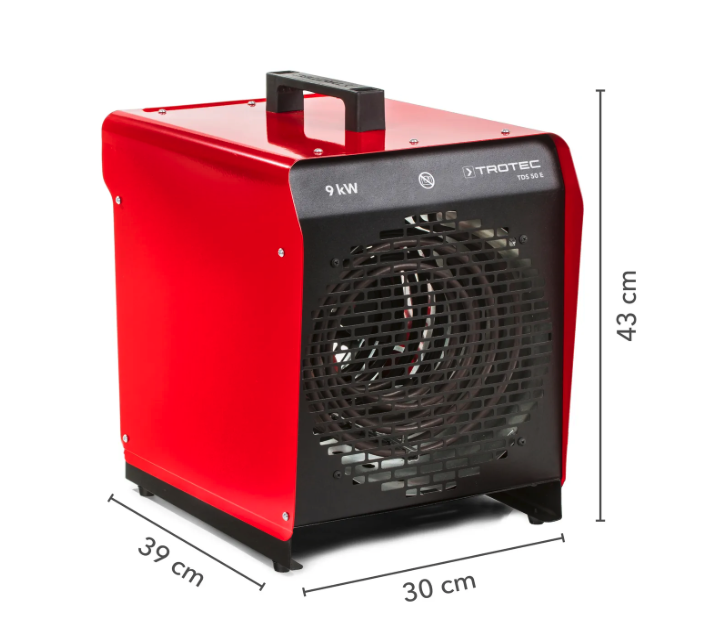 Elektrické topidlo Trotec TDS 50 E je výkonné zařízení určené pro rychlé a efektivní vytápění vnitřních prostor, jako jsou dílny, sklady či staveniště. Nabízí topný výkon až 9 kW a je vybaveno ventilátorem pro rovnoměrnou distribuci tepla.