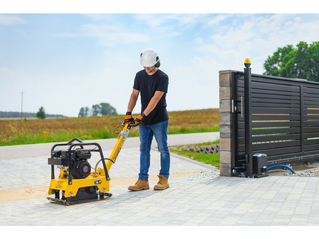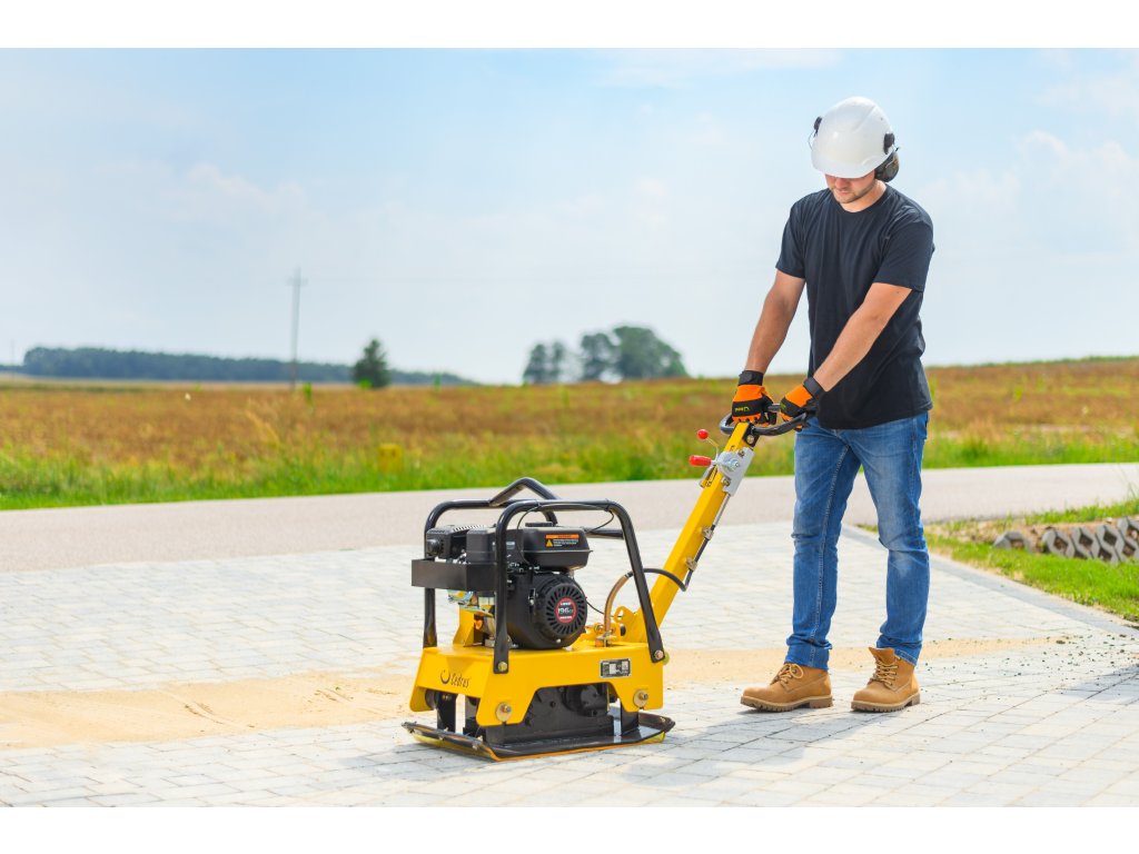 - Vibrační pěch je vybaven odolnou hutnicí deskou o rozměrech 630 × 400 mm, která zajišťuje stabilitu při práci a přesné hutnění povrchů. Systém vibrací 4 300 vpm umožňuje rovnoměrné zpracování povrchů a hluboké zhutnění až 30 cm.