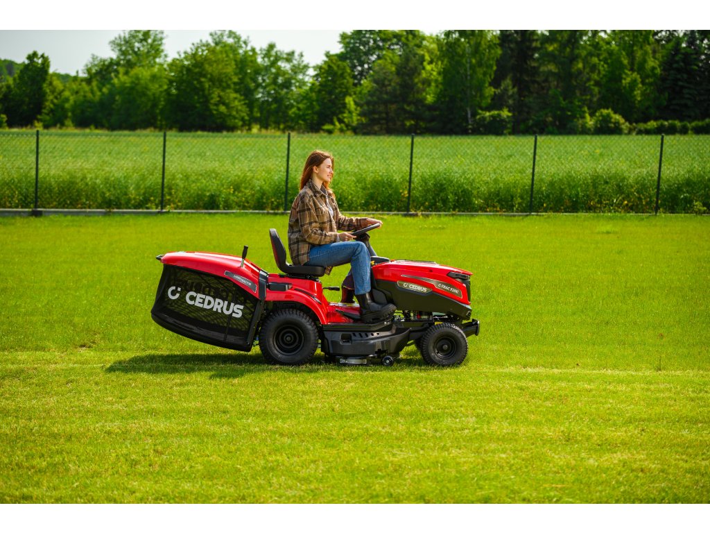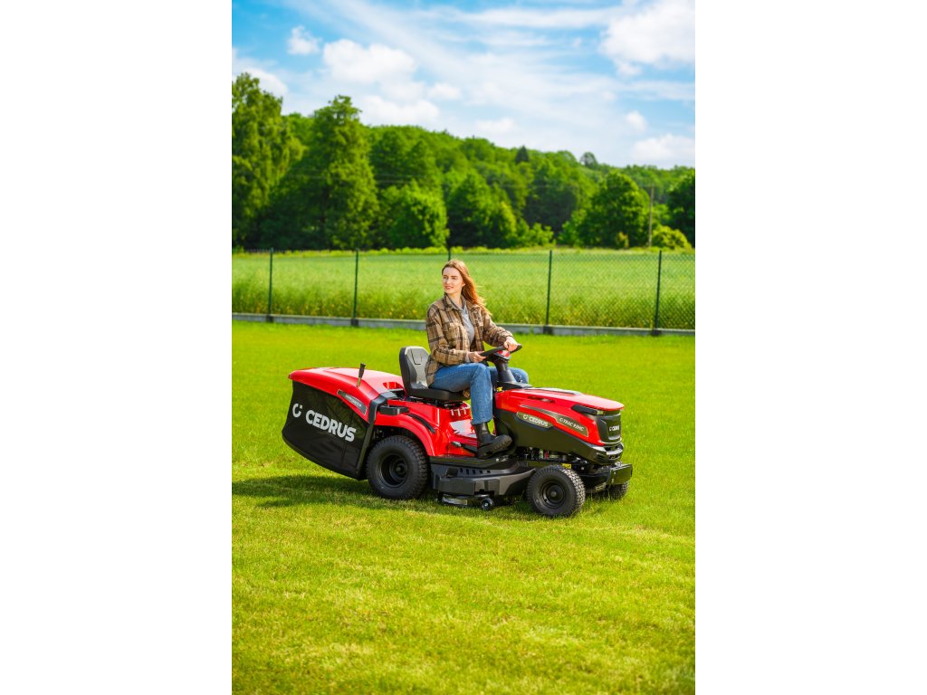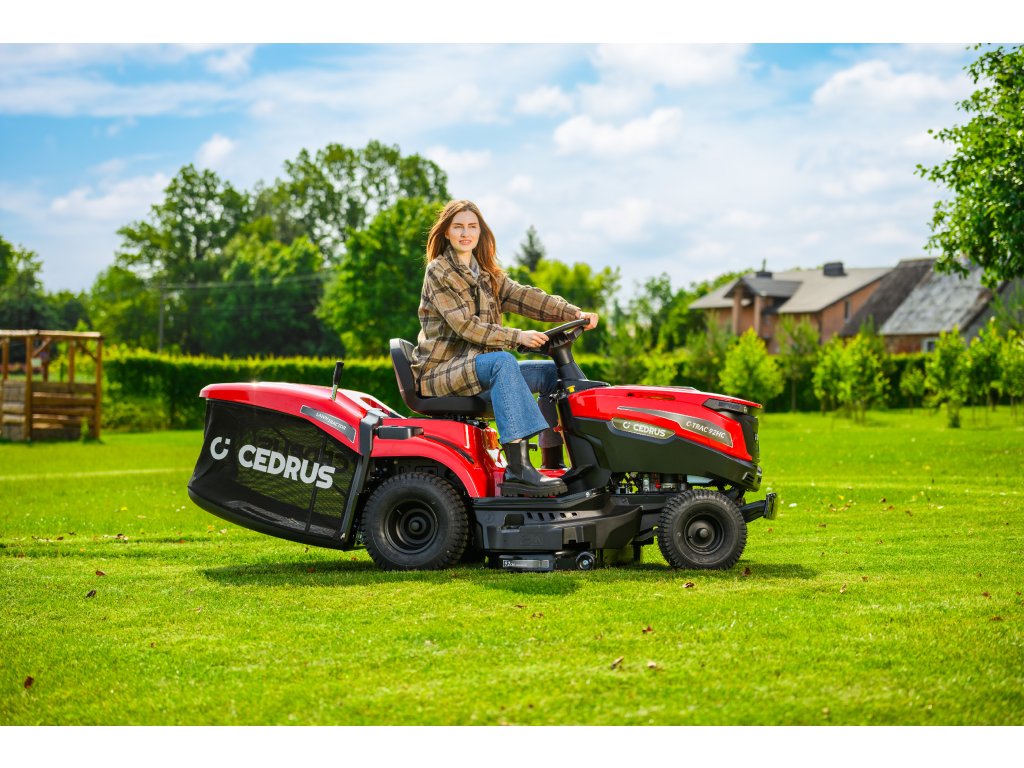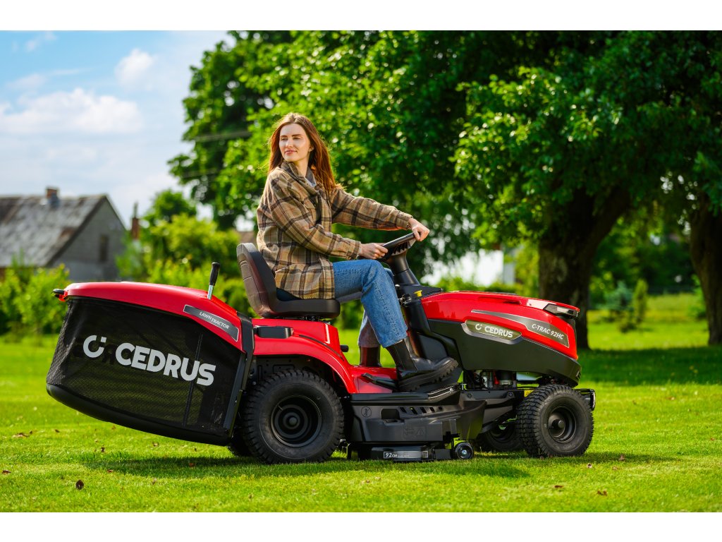 CEDRUS C-TRAC-92HC je výkonný zahradní traktor s motorem Loncin LC1P92F-1 (452 cm³, 7,8 kW) a pracovním záběrem 92 cm. Díky hydrostatické převodovce Tuff Torq, elektromagnetickému zapínání nožů a objemnému sběrnému koši (245 l) je ideální pro efektivní údržbu rozsáhlých travnatých ploch. Možnost mulčování a bočního výhozu přidává další flexibilitu při práci.