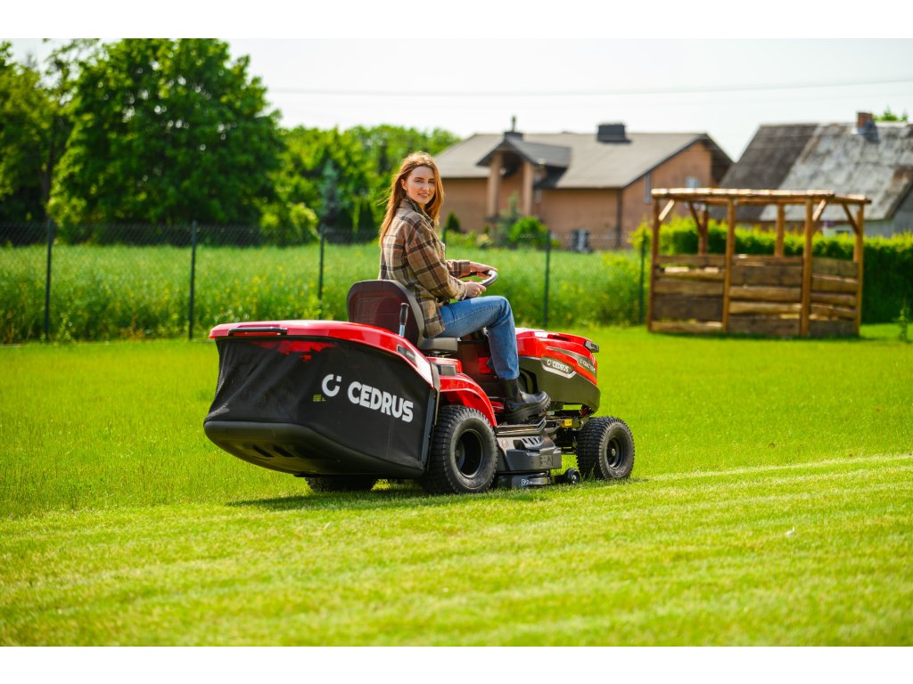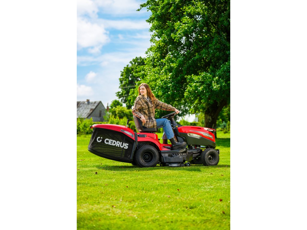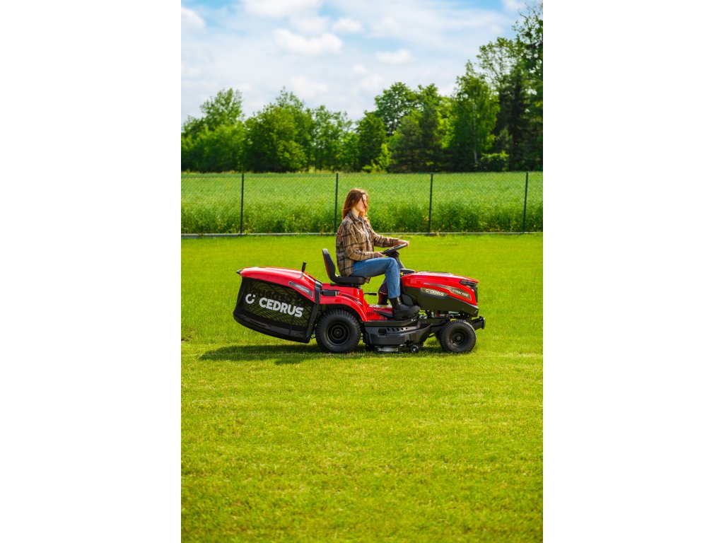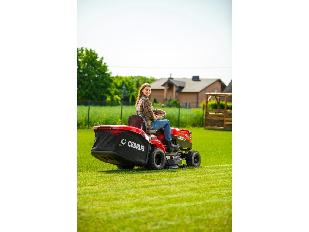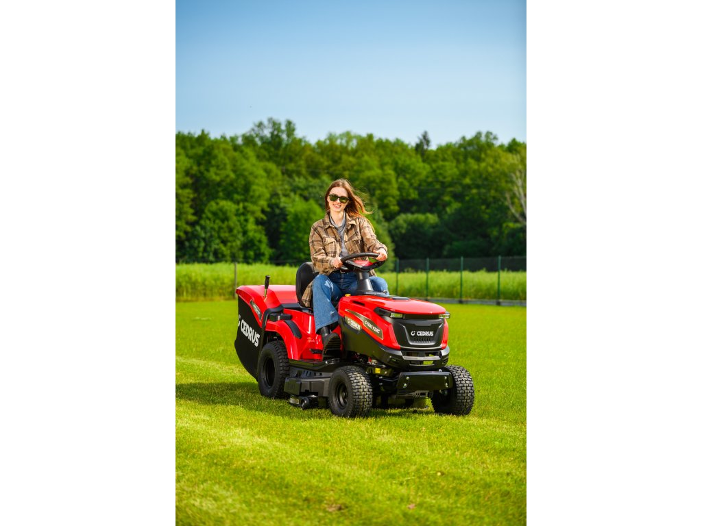 CEDRUS C-TRAC-92HC je výkonný zahradní traktor s motorem Loncin LC1P92F-1 (452 cm³, 7,8 kW) a pracovním záběrem 92 cm. Díky hydrostatické převodovce Tuff Torq, elektromagnetickému zapínání nožů a objemnému sběrnému koši (245 l) je ideální pro efektivní údržbu rozsáhlých travnatých ploch. Možnost mulčování a bočního výhozu přidává další flexibilitu při práci.